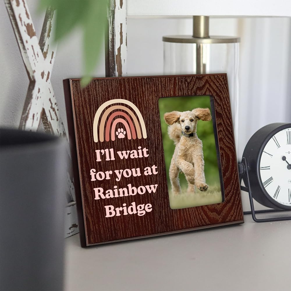 ابتكر تكريمًا صادقًا مع إطارات الكلاب الخاصة بنا للصور التذكارية، وهي مثالية للذكرى التذكارية للكلاب والمناسبات الجنائزية. إطار الصورة الجميل بألوان قوس قزح مريح لأنه يحتوي على قصيدة جسر قوس قزح تضمن الوعد بلم الشمل في المستقبل.