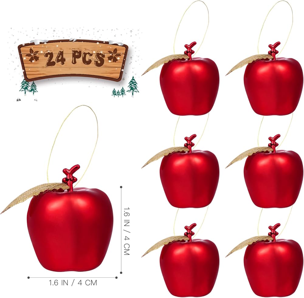 زينة عيد الميلاد - سوف تحصل على 24 قطعة من التفاح المقلد مع زينة أوراق الشجر، وهي رقيقة جدًا ومزخرفة للغاية.
