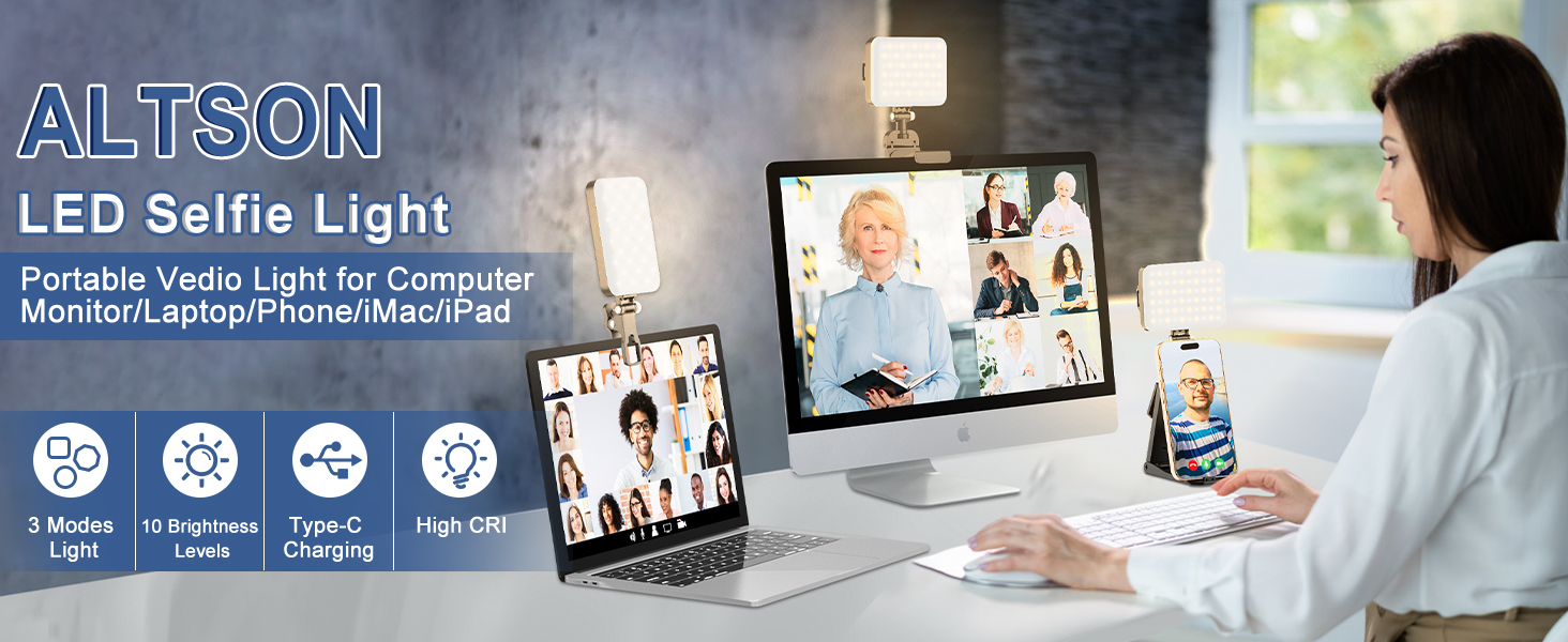 【متعدد الاستخدام، عمل مذهل! 】يوفر مصباح مؤتمر الفيديو المجهز بحامل شاشة ثلاثي الاتجاهات ارتفاعًا قابلاً للتعديل وإمالة ودوران، مما يسمح بوضع الضوء بدقة على الكمبيوتر المكتبي أو الكمبيوتر المحمول. يمكنك ضبط إعدادات السطوع ودرجة حرارة اللون بسهولة لتحقيق الإضاءة المرغوبة.