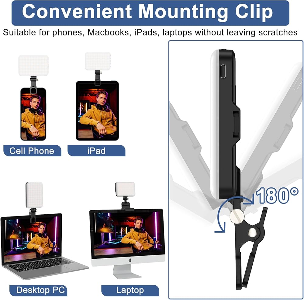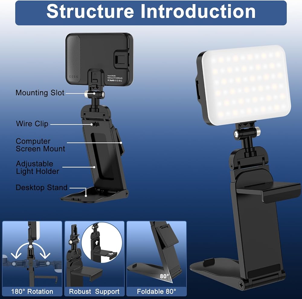 【تصعيد البث الخاص بك 】 يتميز مصباح الهاتف LED بدوران 180 درجة وإضاءة ناعمة بدون ضوء قاس؛ البطارية المدمجة بسعة 2200 مللي أمبير في الساعة تجعلها مثالية للألعاب والبث الصوتي والبث أثناء جلسات البث الممتدة. يمكنك الاستمتاع بكل من حامل الشاشة وحامل الهاتف الخلوي في أي وقت بحرية!