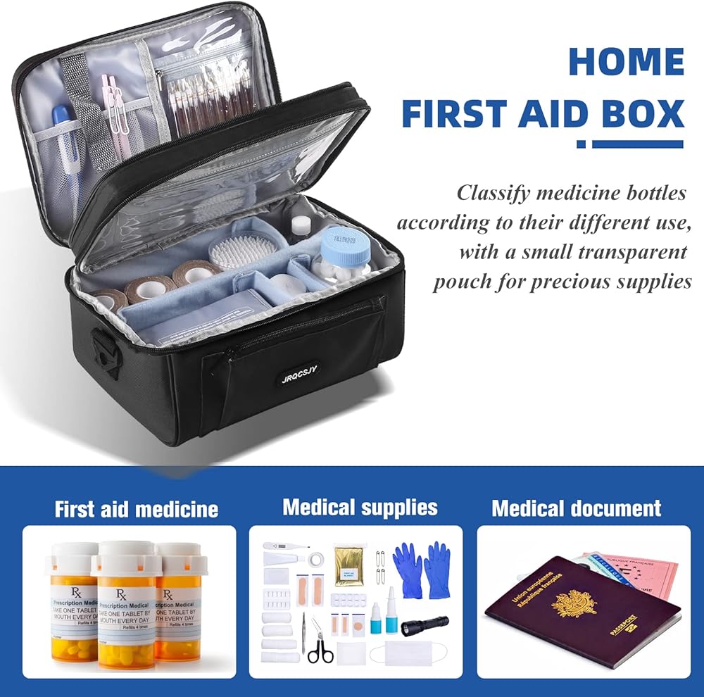 سهلة الحمل: مع مقبض قوي وحزام كتف قابل للتعديل، فإن حقيبة تنظيم الإسعافات الأولية مريحة لك لنقل الأدوية الأساسية ومعدات الإسعافات الأولية عند السفر أو التخييم أو التنزه أو الأنشطة الخارجية الأخرى.