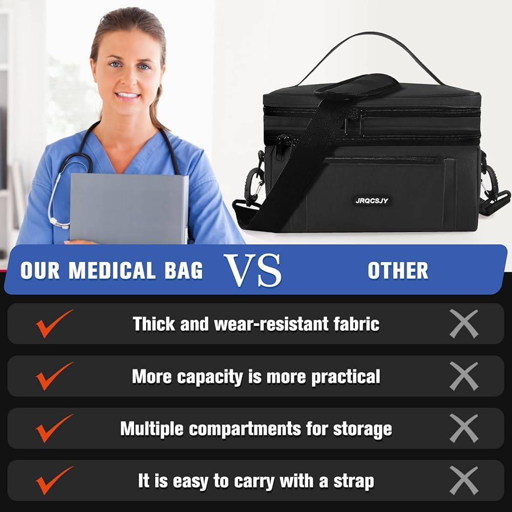 جودة فاخرة: حقيبة تنظيم الأدوية مصنوعة من قماش أكسفورد المقاوم للتمزق. خياطة مزدوجة متينة وتصميم سحاب ثنائي الاتجاه يجعل الحقيبة أكثر متانة وراحة.