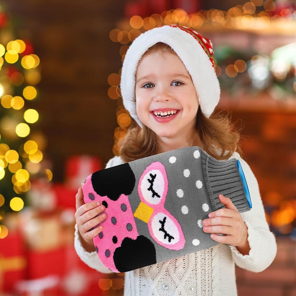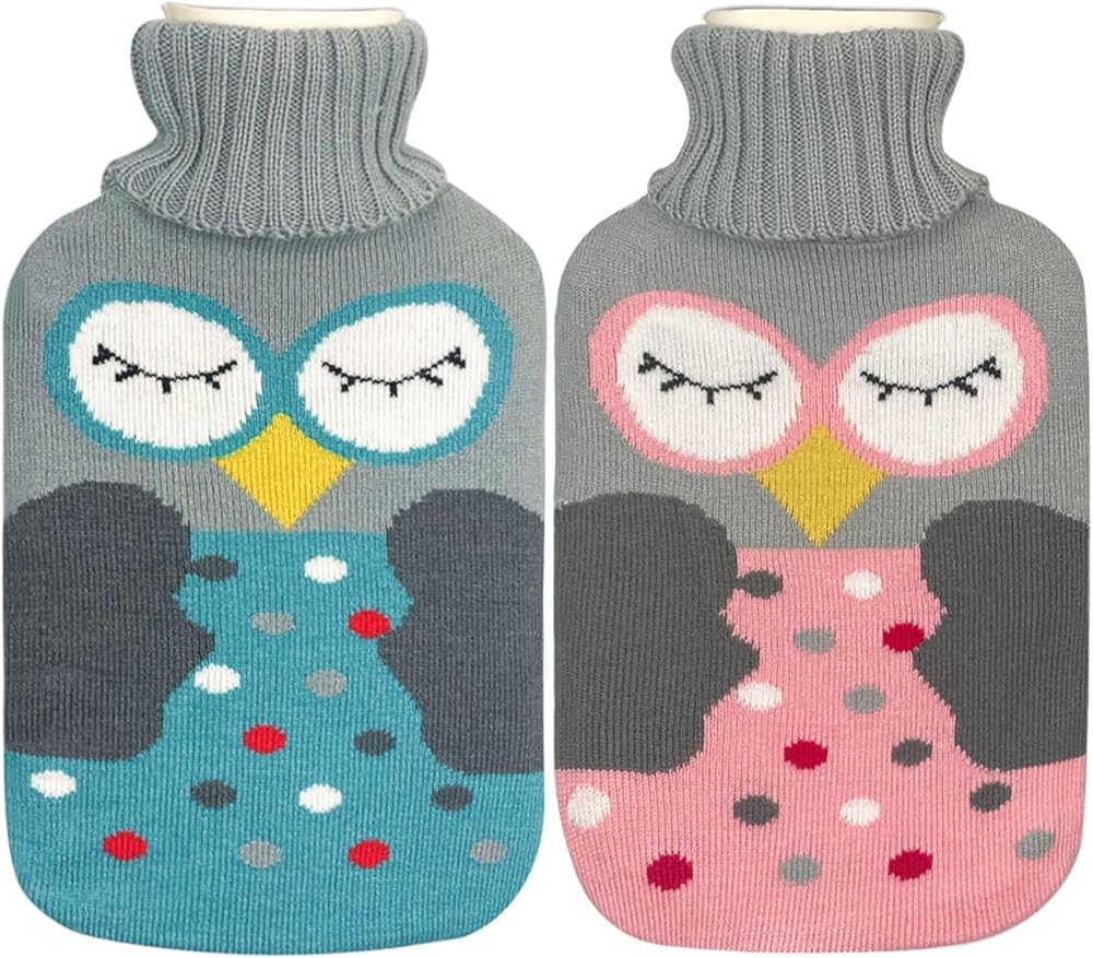 【Package Included】2 X 2L Rubber Hot Water Bottle and 2 X Cartoon Knit Cover.( Do not use the microwave for heating)