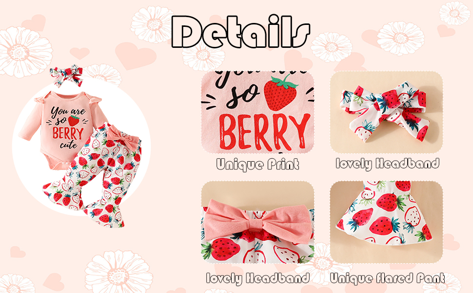 • ✿ سالوبيت بأكمام طويلة مكشكشة: قميص علوي بأكمام طويلة مطبوع عليه حروف، سروال سفلي على شكل جرس مطبوع عليه زهور لطيفة / زرافة / فراولة يأتي مع ربطة عنق مزخرفة لإضافة المزيد من الجاذبية. عصابة رأس ذات عقدة على شكل فيونكة تمنح طفلك الصغير مظهرًا مميزًا على الفور