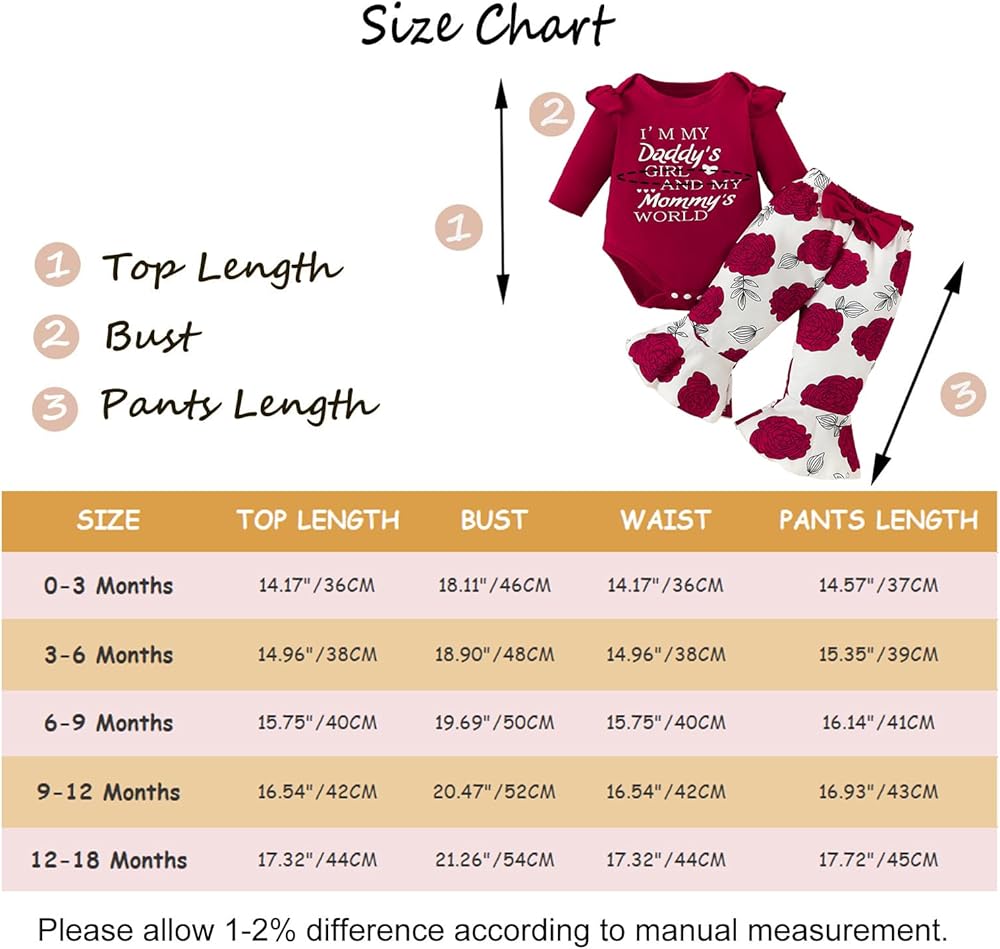 • ✿ المقاس المناسب: ملابس الأطفال Daddy's Girls مناسبة للفتيات من سن 0 أشهر إلى 18 شهرًا. مثل ملابس الفتيات الصغيرات من 0 إلى 3 أشهر، وملابس الفتيات من 3 إلى 6 أشهر، وملابس الفتيات الصغيرات من 6 إلى 12 شهرًا، وملابس الفتيات من 12 إلى 18 شهرًا.