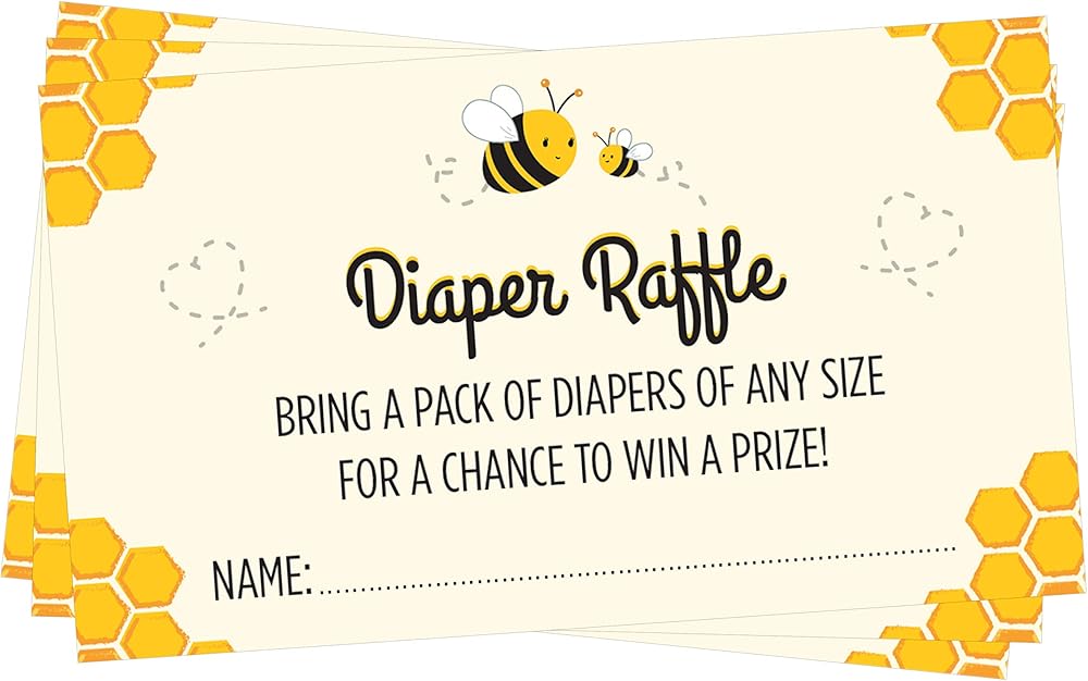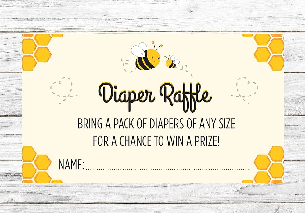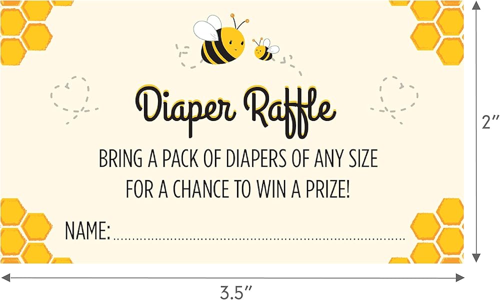 24 بطاقة رافل للحفاضات - بطاقات تذكرة رافل على شكل نحلة من العسل تجعل الحشو المثالي لتضمينه مع دعوة استقبال المولود من الأم إلى النحل