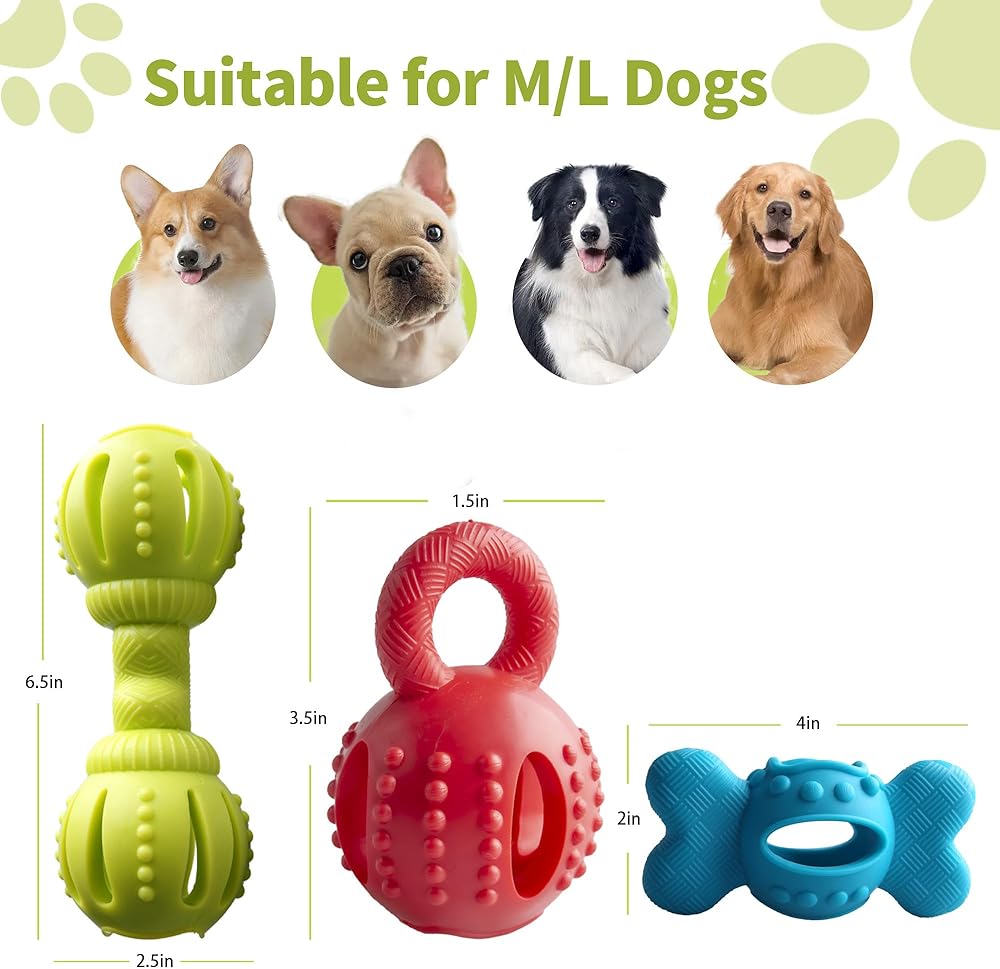 توزيع الحلوى المليء بالمرح: نحن نتفهم رغبتك في جعل وقت تناول الطعام جذابًا وصعبًا لكلبك. تتضمن هذه المجموعة ثلاث ألعاب بألوان وأشكال مختلفة، تتميز كل منها بفتحات مصممة خصيصًا لوضع المكافآت. شاهد كلبك يمضغ هذه الألعاب لاسترداد المكافآت المبهجة، وإشعال استكشافه وحملة الطعام، وتحويل وقت الطعام إلى لعبة مبهجة.