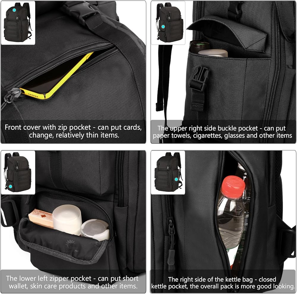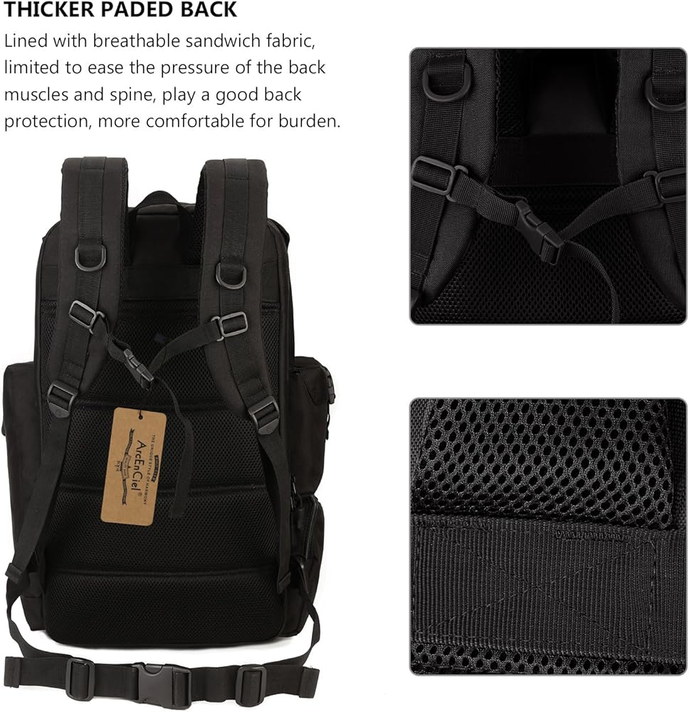 نظام حمل سميك ومريح. تتميز حقيبة الظهر بشبكة مسامية خاصة بها وتخفيف الضغط، وحزام خصر قابل للتعديل والإزالة، وحزام للصدر وأحزمة كتف مريحة. جميعها فعالة لتخفيف ضغط عضلات الكتف والفقرات، وتوفر حماية جيدة للكتف عند حمل الأحمال الثقيلة