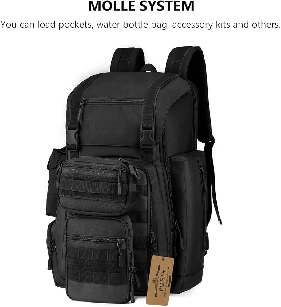 يمكن استخدام تصميم نظام MOLLE مع المعدات الأخرى. من السهل تركيب حقيبة الملحقات، والغلاية، وحقيبة التعليق، والنظارات، والهاتف الداخلي، وحلقة تسلق، ومصباح يدوي صغير وغيرها من المعدات الخارجية على الجزء الأمامي من حقيبة الظهر