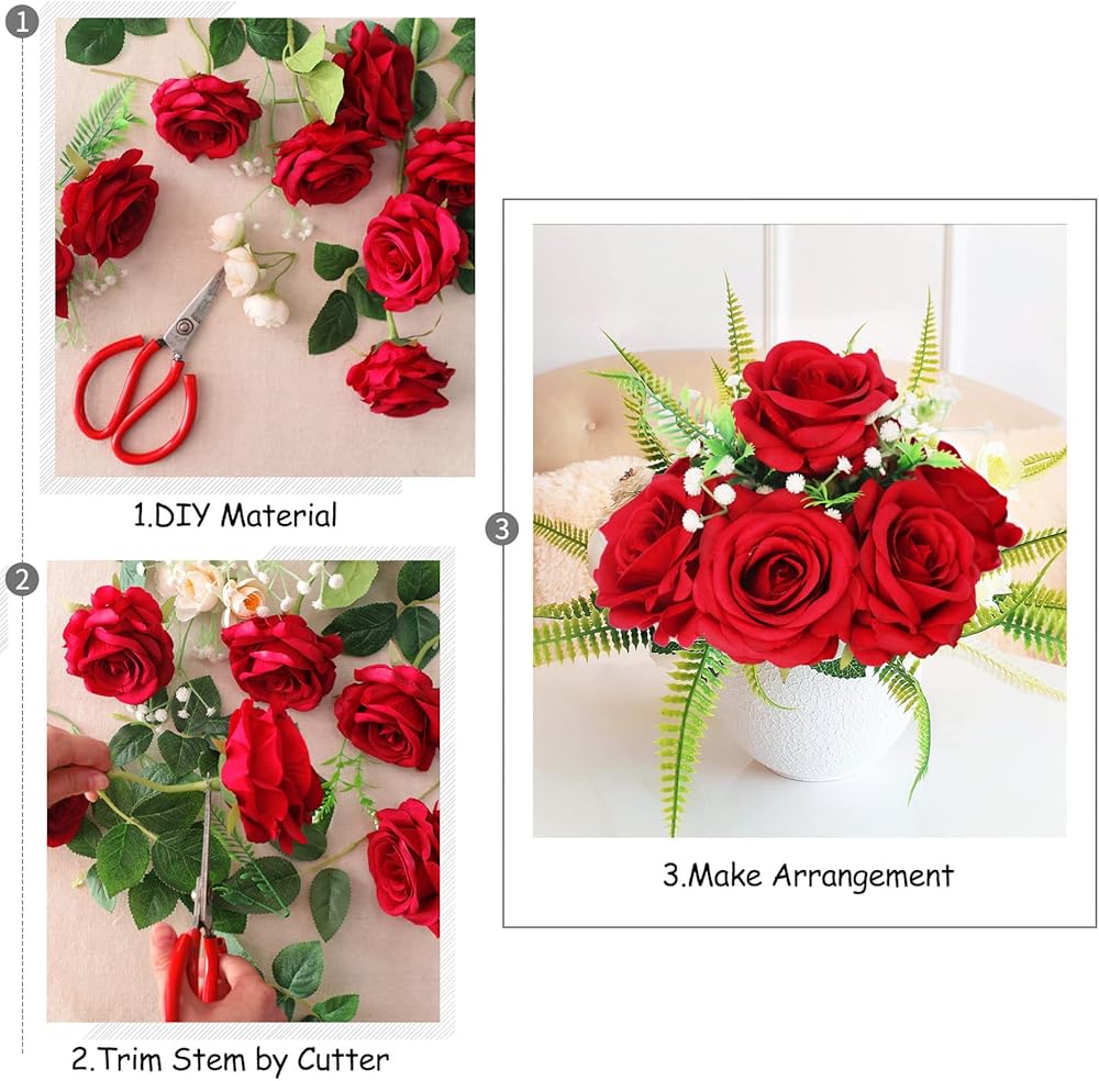 【الحجم والمواد】يوجد 12 قطعة من الورود المزيفة. ويبلغ طول رأس الورد حوالي 3.54 سم، ويبلغ الطول الإجمالي حوالي 20 سم. يمكن أن تلبي استخدامك اليومي. الورود الحريرية مصنوعة بشكل أساسي من الحرير والبلاستيك عالي الجودة، وهو صديق للبيئة. وغير ضار، يمكنك استخدامه بأمان.