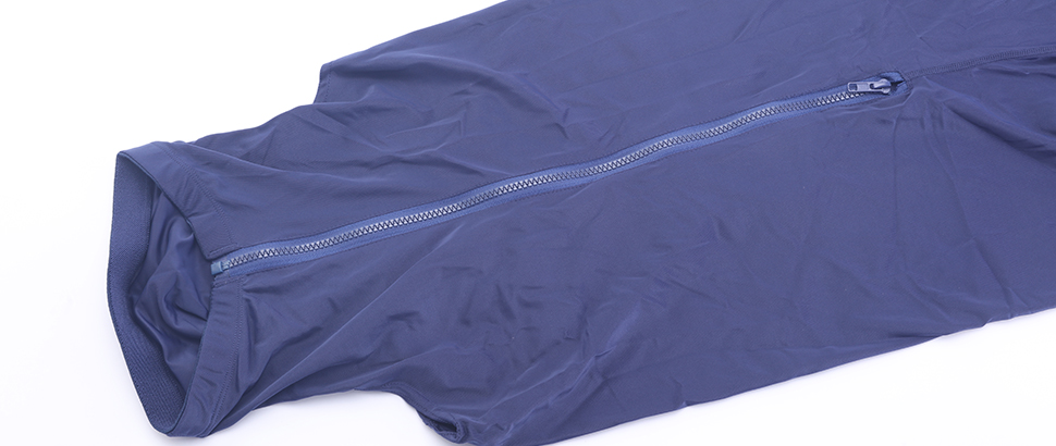 يمتد السحاب من الذقن إلى الصدر، ويمكن تركيبه وإزالته بسهولة.