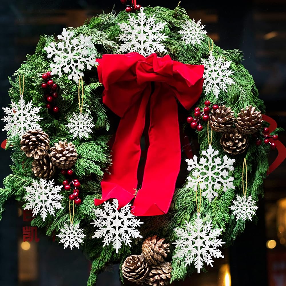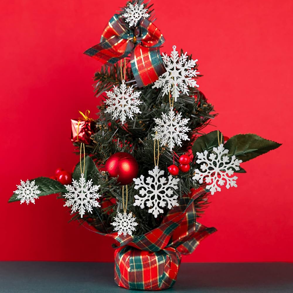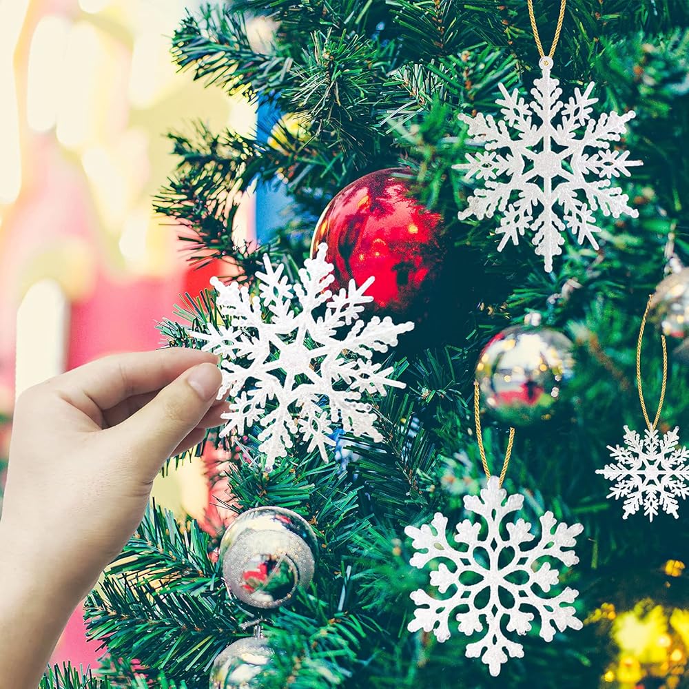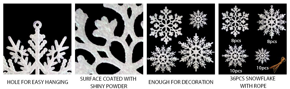 36 قطعة من الحلي البلاستيكية ندفة الثلج، أحجام متنوعة لامعة بيضاء بريق ندفة الثلج عيد الميلاد زينة زينة معلقة لتزيين عيد الميلاد والحرف والزفاف والزخرفة