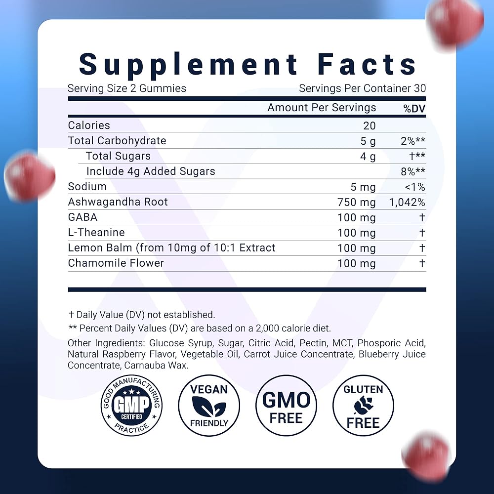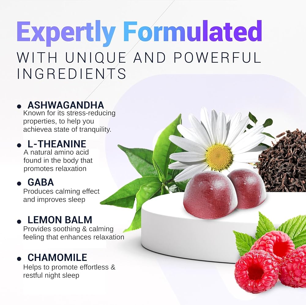 • علكة الإجهاد: مكمل تخفيف التوتر الخاص بنا متوفر في شكل علكة مريحة بنكهة التوت، مما يجعل من السهل دمجها في روتينك اليومي. احصل على نوم هادئ بشكل طبيعي مع مساعدتنا، خالية من المواد الكيميائية والمواد المضافة القاسية.
