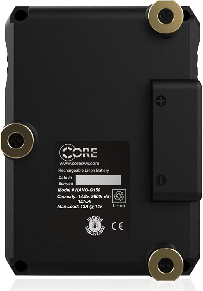 Core 2x SWX NANO Micro 14.8V 147Wh Lithium-Ion Battery (Gold-Mount) - Core SWX 1 Year Limited Warranty - Core SWX GPM-X2A Super Compact 3-Stud Gold-Mount Fast Charger