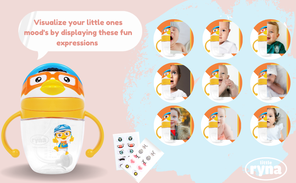 ما الذي يميزنا عن مختلف: اجعل مشروب طفلك أكثر متعة: قم بتمرير مزاج طفلك على عيون الكوب. يحتوي هذا الكوب على 10 أزواج من ملصقات العين قابلة للتبديل من أجل عرض فن إكسبريشن.