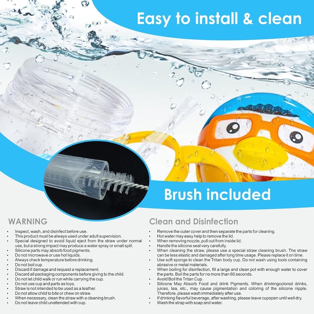 سهل التنظيف: الفم المفتوح العريض لأنبوب امتصاص السيليكون يجعل من السهل على الطفل أن يمتص أي سائل، بغض النظر عن الكثافة. كما أنه يجعل عملية التنظيف أسرع وأسهل. تشتمل العبوة على فرشاة واحدة، وأنبوب أنبوب أنبوب امتصاص إضافي، وكرة بديلة إضافية الوزن..تركيب المواد: تريتان 50%، وبولي بروبيلين 50%. تعليمات العناية: غسيل في الغسالة