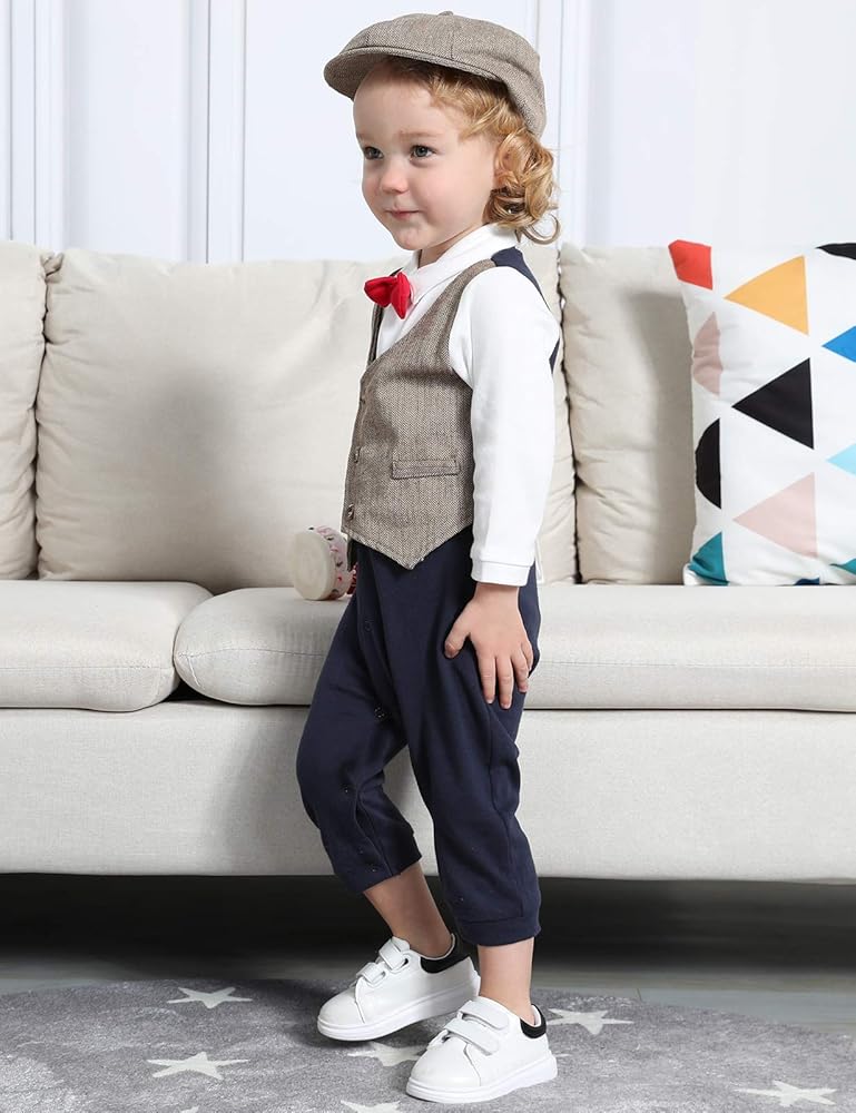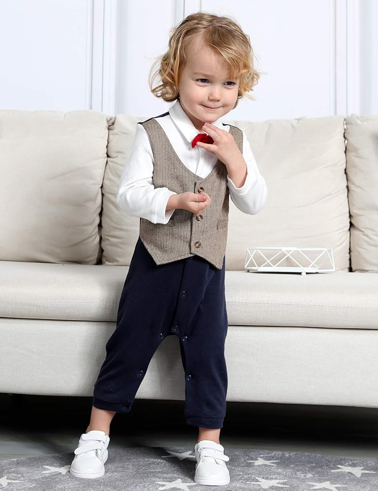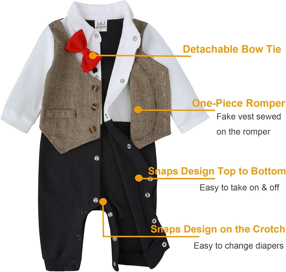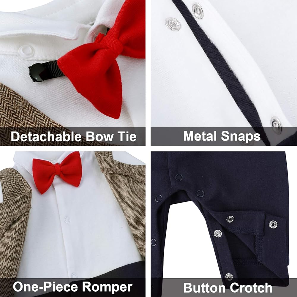 • تتضمن بدلات الأطفال الصغار قطعة واحدة من رومبر مع ربطة عنق قابلة للفصل، ناعمة ومريحة، ومسامية ولا تسبب تهيج الجلد.