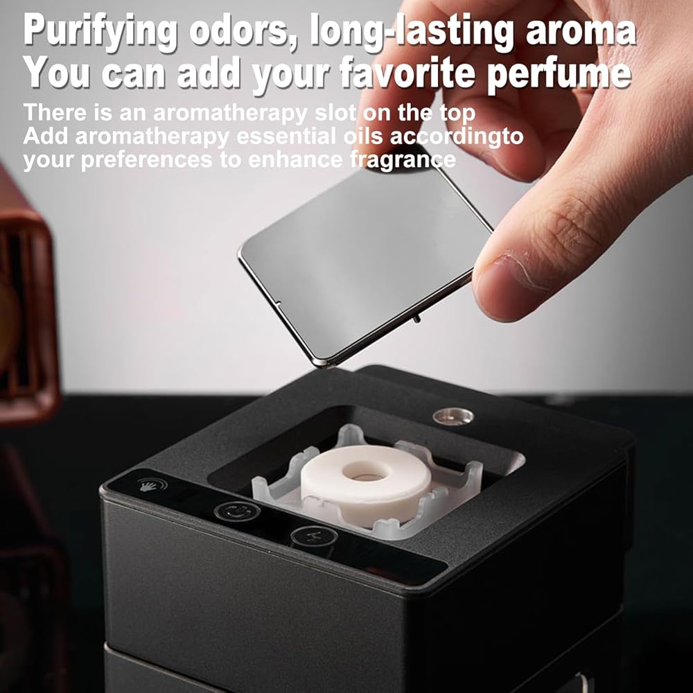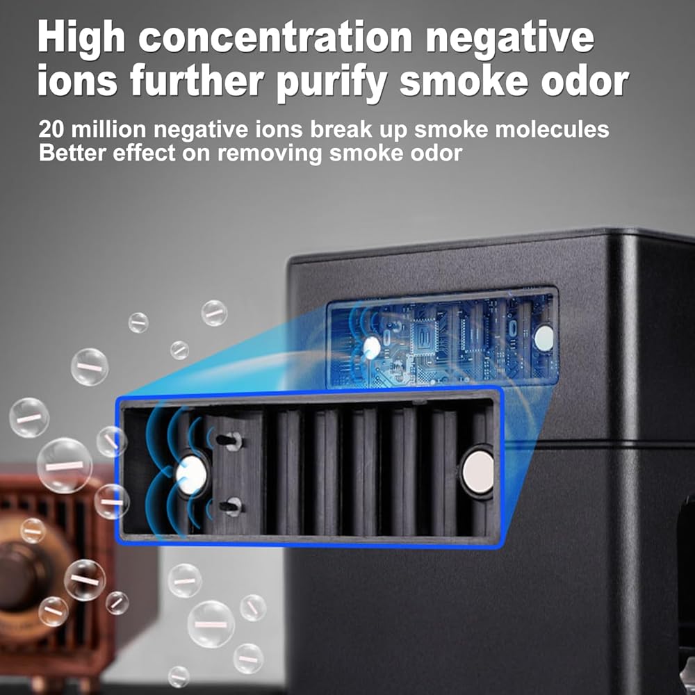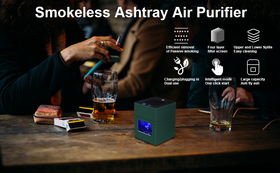 [منفضة سجائر متعددة الأغراض:] لا يمكنها فقط حمل أعقاب السجائر والرماد؛ فلتر ومروحة مدمجين، يمكن أن يقلل تشغيل المروحة بشكل فعال من رائحة دخان الفحم ويقلل من انتشار الدخان غير المباشر في الهواء، دون القلق بشأن تداخل الدخان السلبي مع الآخرين.