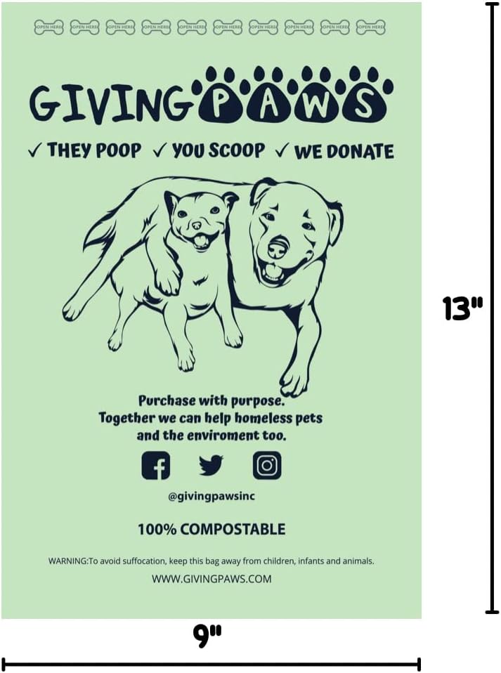 يسمح جيفينج باوز لأصحاب الحيوانات الأليفة بالشراء لغرض والتوحيد حول هدف مشترك وهو رد الجميل للحيوانات الأليفة المحتاجة. نتبرع بنسبة 20% من أرباحنا للمساعدة في تمويل ملاجئ الحيوانات المحلية وعمليات الإنقاذ، في محاولة لضمان دعم كل حيوان بشكل صحيح. تمنح أكياسنا القابلة للتحلل والد الحيوانات الأليفة بديلاً بلاستيكيًا وصديق للبيئة للتخلص من براز حيوانك الأليف. كما أن النواة والتعبئة الخاصة بنا مصنوعة من مواد ورقية معاد تدويرها.