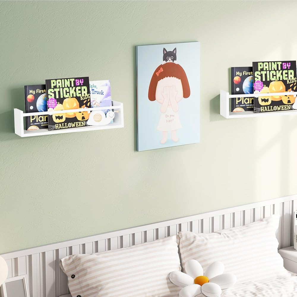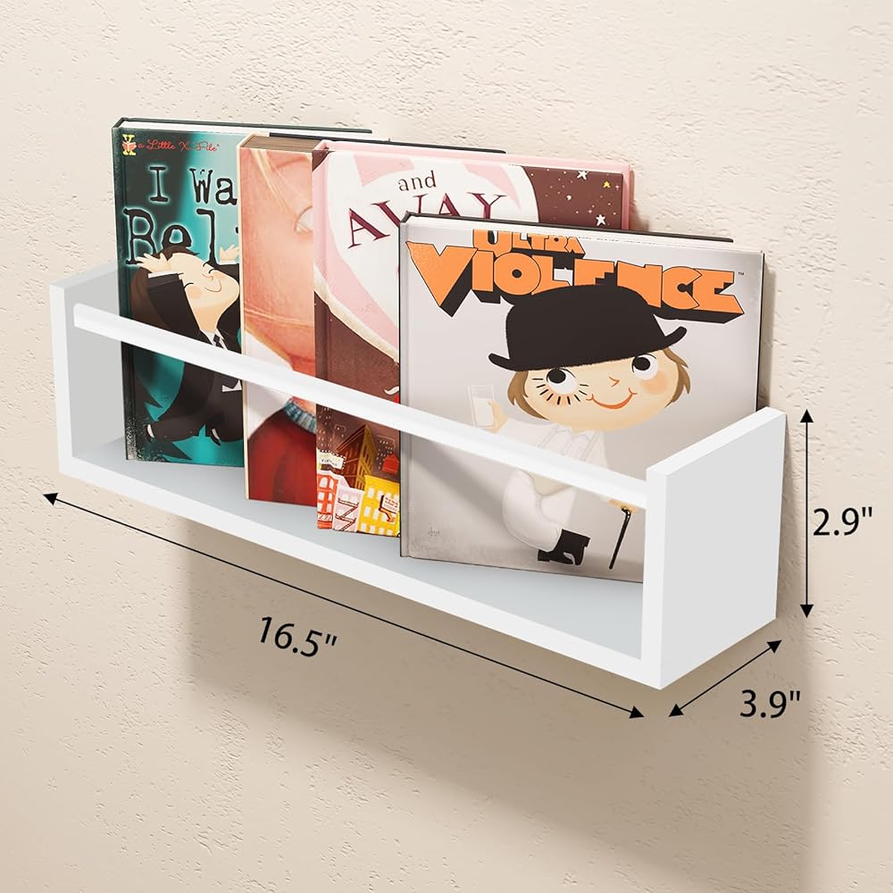 [Excellent Quality] - Made of durable solid pine wood, these floating book shelves are built to last and provide a reliable storage solution for your children's favorite items. And they are perfect for nursery decor.