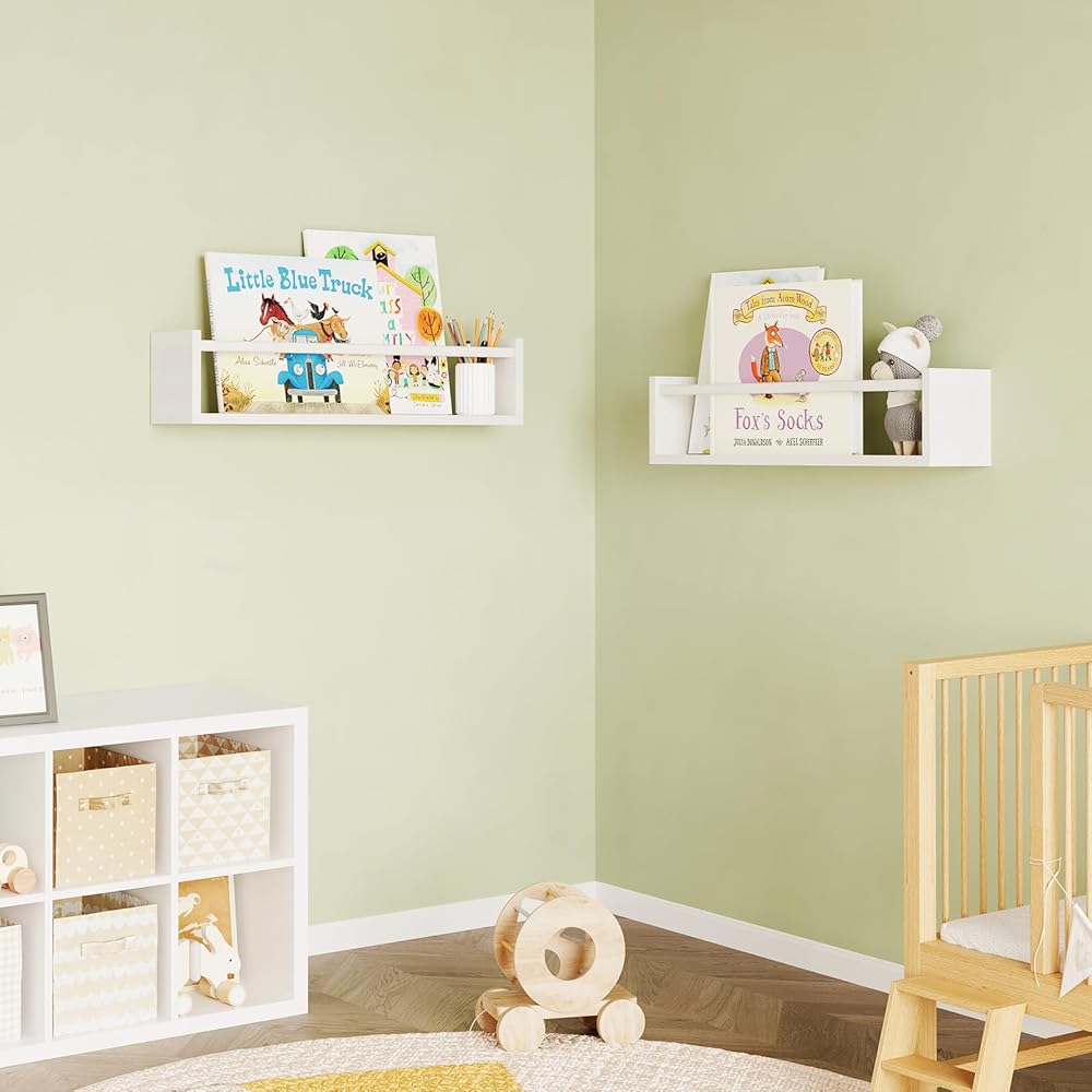 [Space-Saving] - By mounting these shelves on the wall, they help store your child's belongings, freeing up valuable floor space in your nursery or children's room.