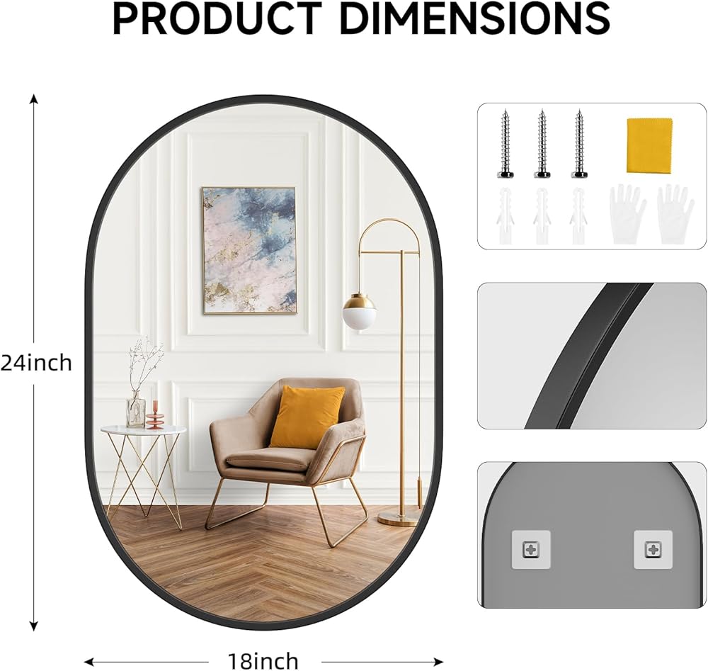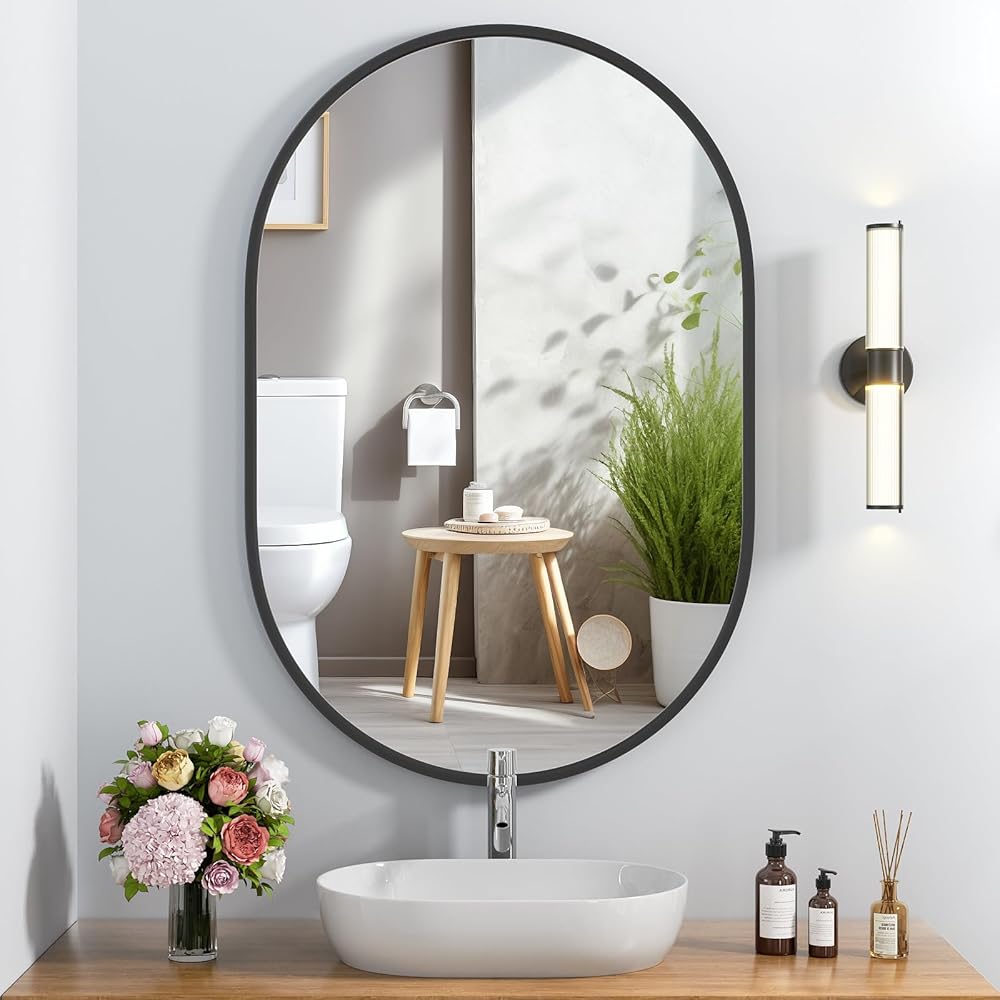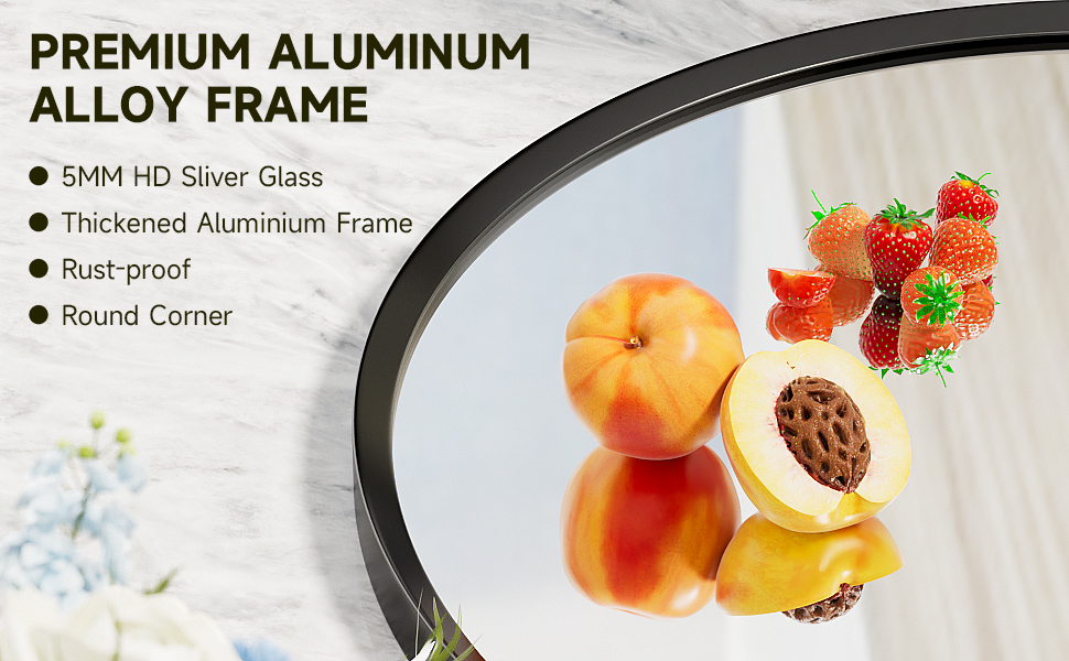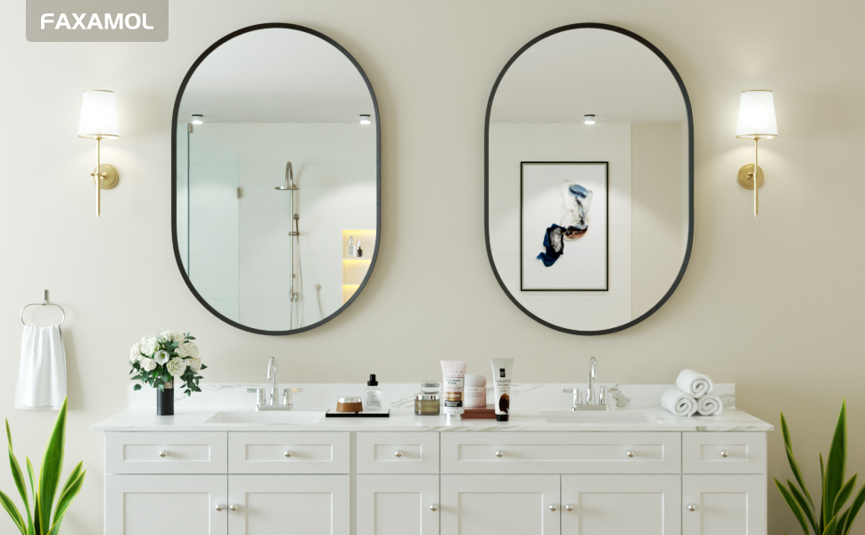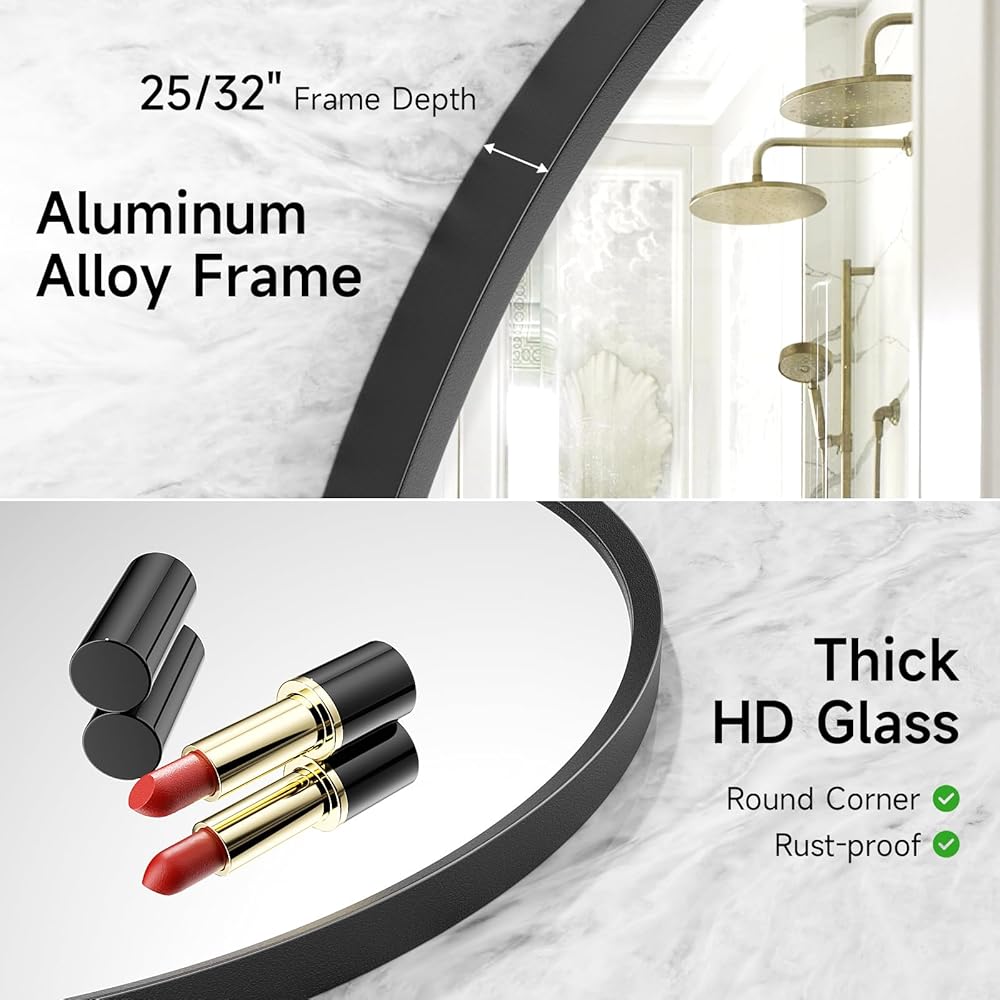 【صناعة حرفية احترافية】مرآة الحمام البيضاوية بإطار من سبائك الألومنيوم الفاخر. بعد معالجة مرآة خاصة مضادة للتآكل، مقاومة للصدأ ولا تبهت. مرآة ذات إطار رفيع، حرفية مصقولة تحمي سطحها من الخدوش والتآكل. قوي ومتين مع ثبات عالي.
