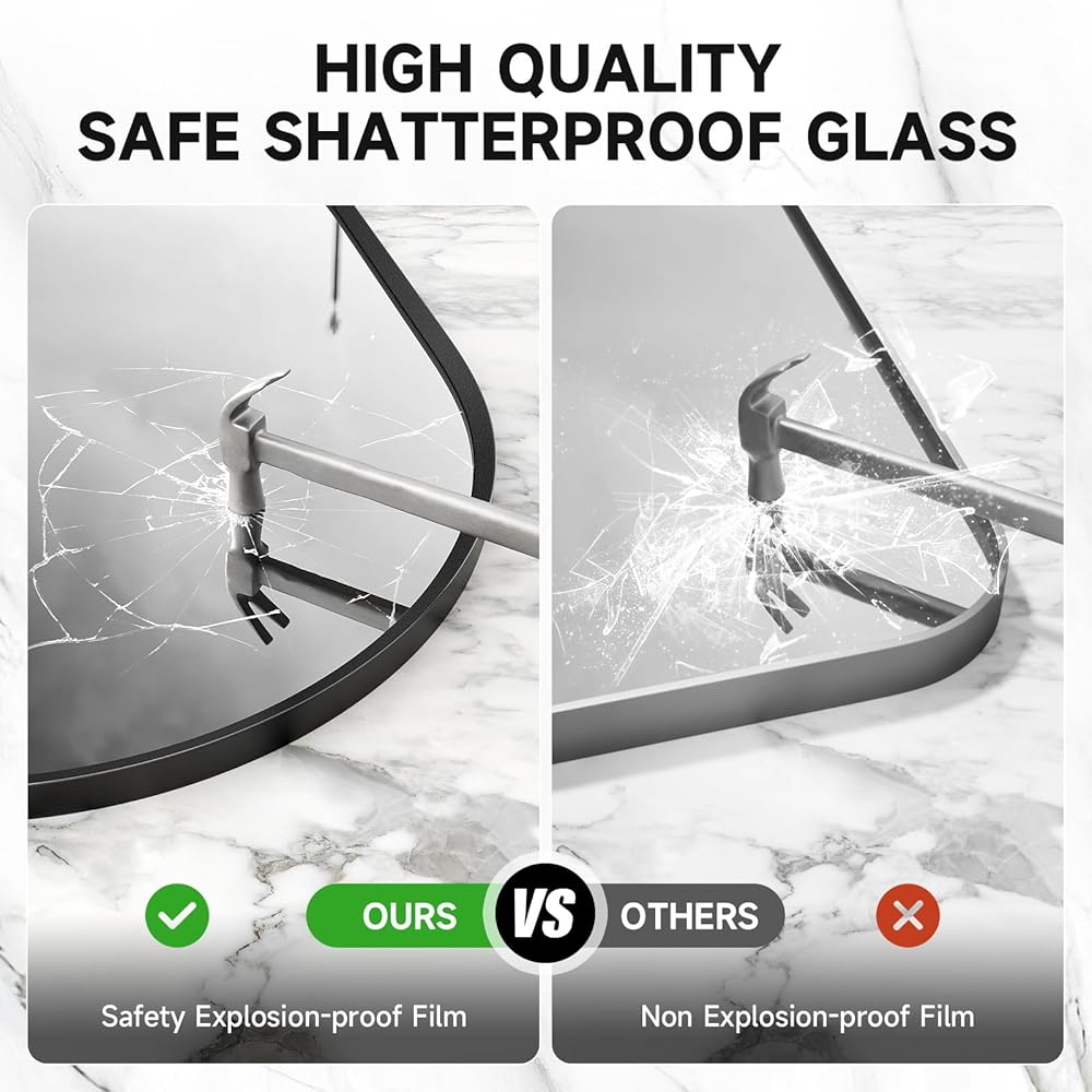 【زجاج عالي الدقة مقاوم للانفجار】مرآة الحمام البيضاوية هذه مصنوعة من مرايا فضية راقية، والتي تتميز أيضًا بصورة ماسية عالية الدقة وانعكاس طبيعي غير مشوه. يوفر الغشاء المقاوم للانفجار المصمم خصيصًا على الظهر حماية أعمق للمرآة، مما يضمن سلامتك أنت وعائلتك.