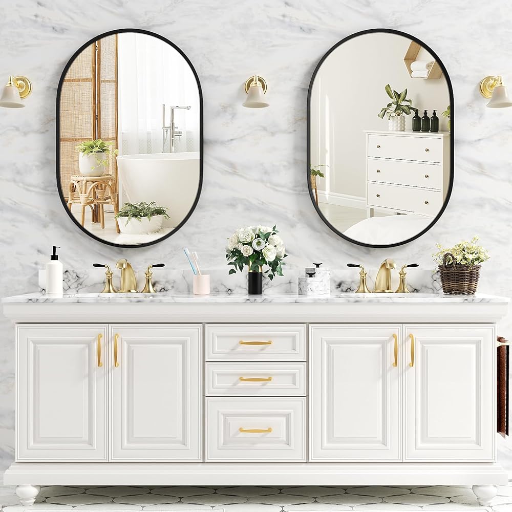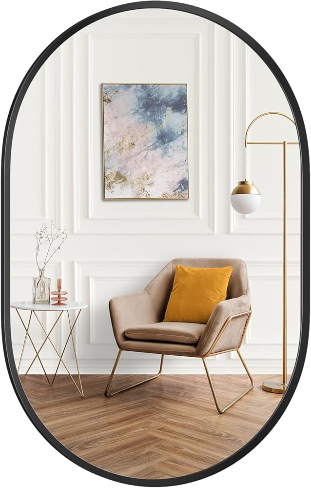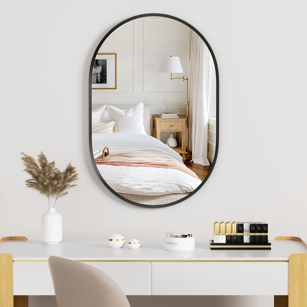 【تطبيقات واسعة】تضيف مرآة الحائط البيضاوية لمسة جمالية ناعمة إلى المساحة. لا يمكن وضعها في غرفة النوم أو الحمام أو غرفة المعيشة أو المدخل أو الصالون لإضافة الضوء لتزيين الأسرة فحسب، بل إنها أيضًا أفضل هدية لعيد الميلاد وعيد الحب وعيد الأم.