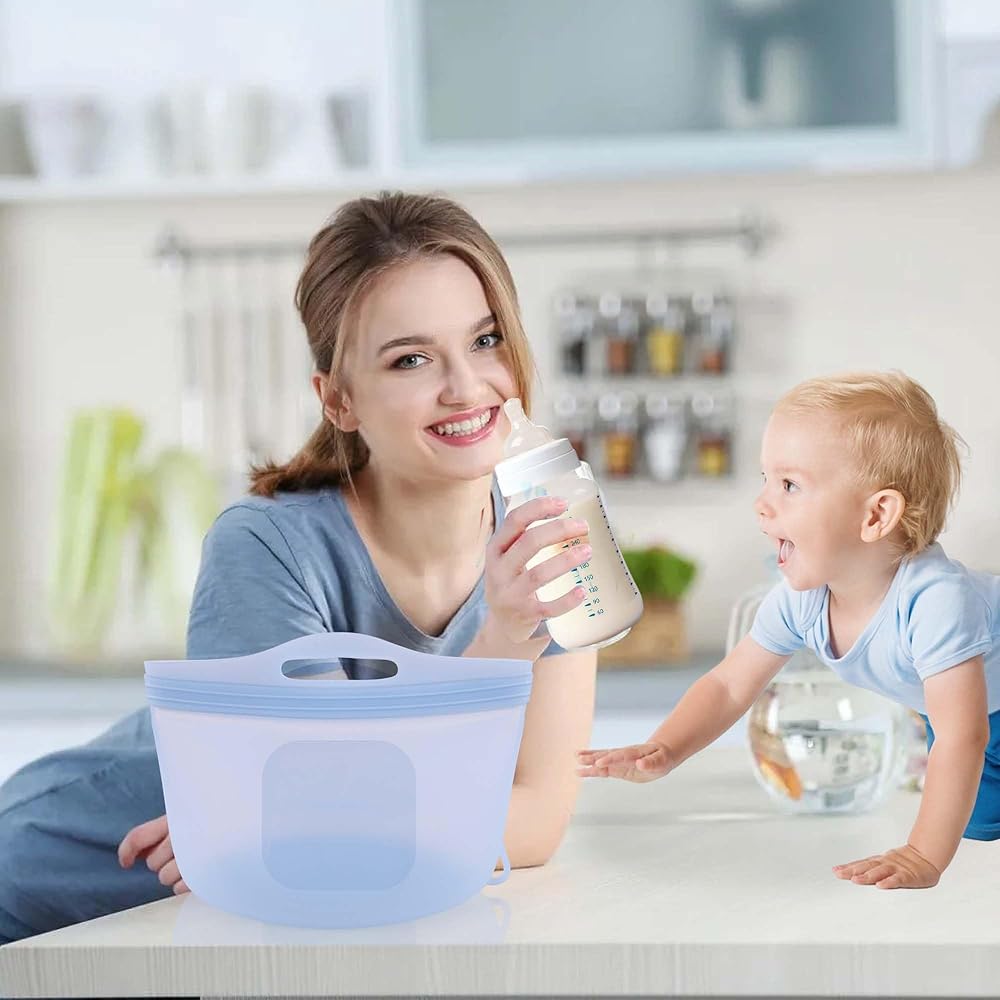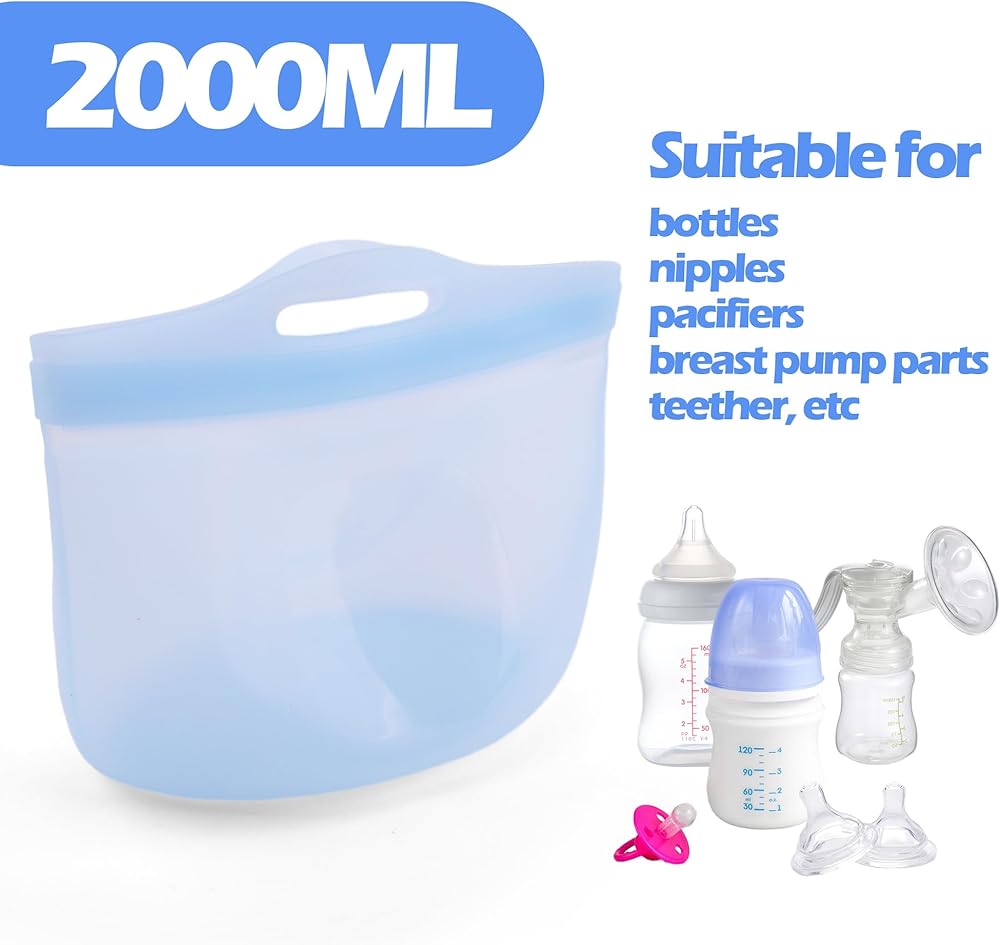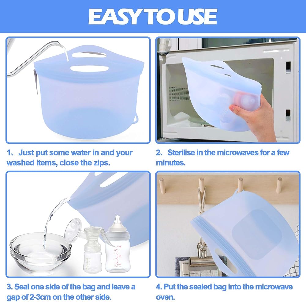 Palksky Large Silicone Microwave Steam Bags for Baby Bottles Reusable Silicone Steaming Bags for Breast Pump Parts Pacifiers Nipples Teethers Soother for Mom Home and Travel Blue