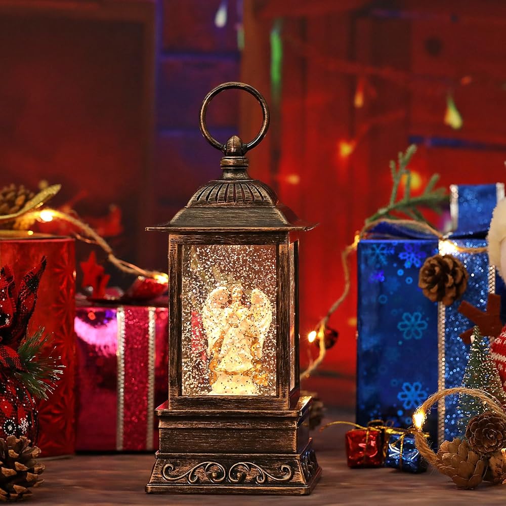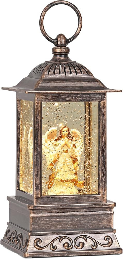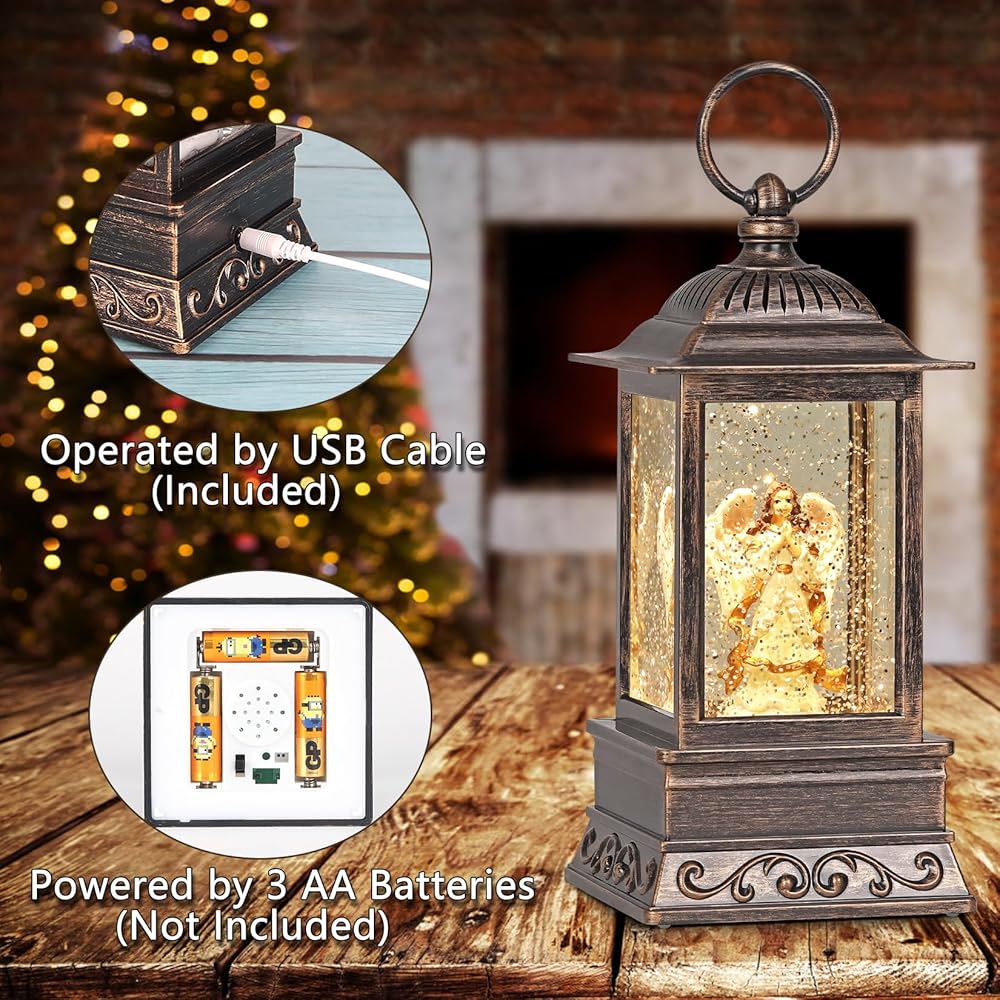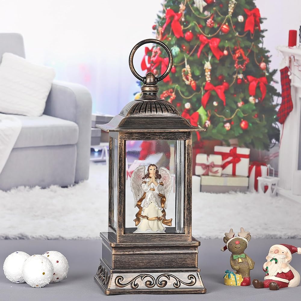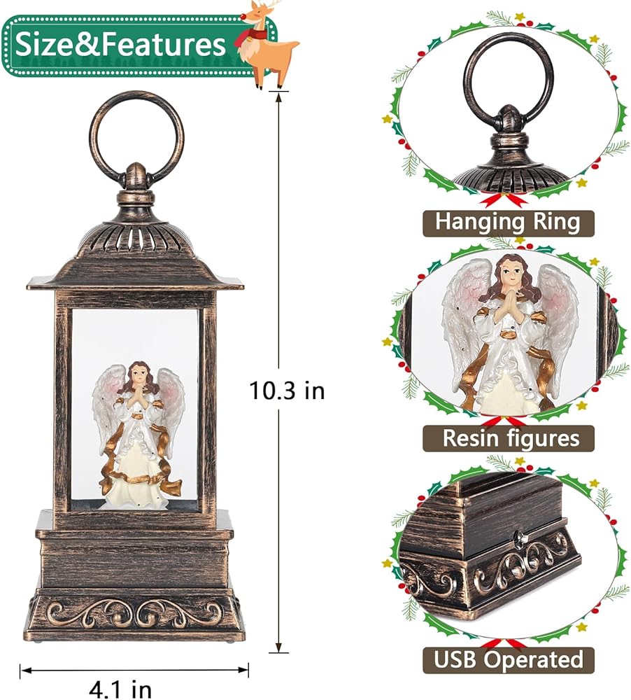 ✨【Glitter Angel Lantern】تم تصميم كرة الثلج بإطار برونزي عتيق وملاك حيوي ومقبض صغير محمول. حجم مثالي لأي مناسبة، أو سطح المكتب، أو الموقد، أو القطع المركزية أو التعليق. تصميم كلاسيكي أنيق يضفي لمسة من الطراز القديم وأجواء عيد الميلاد القوية إلى منزلك.