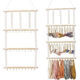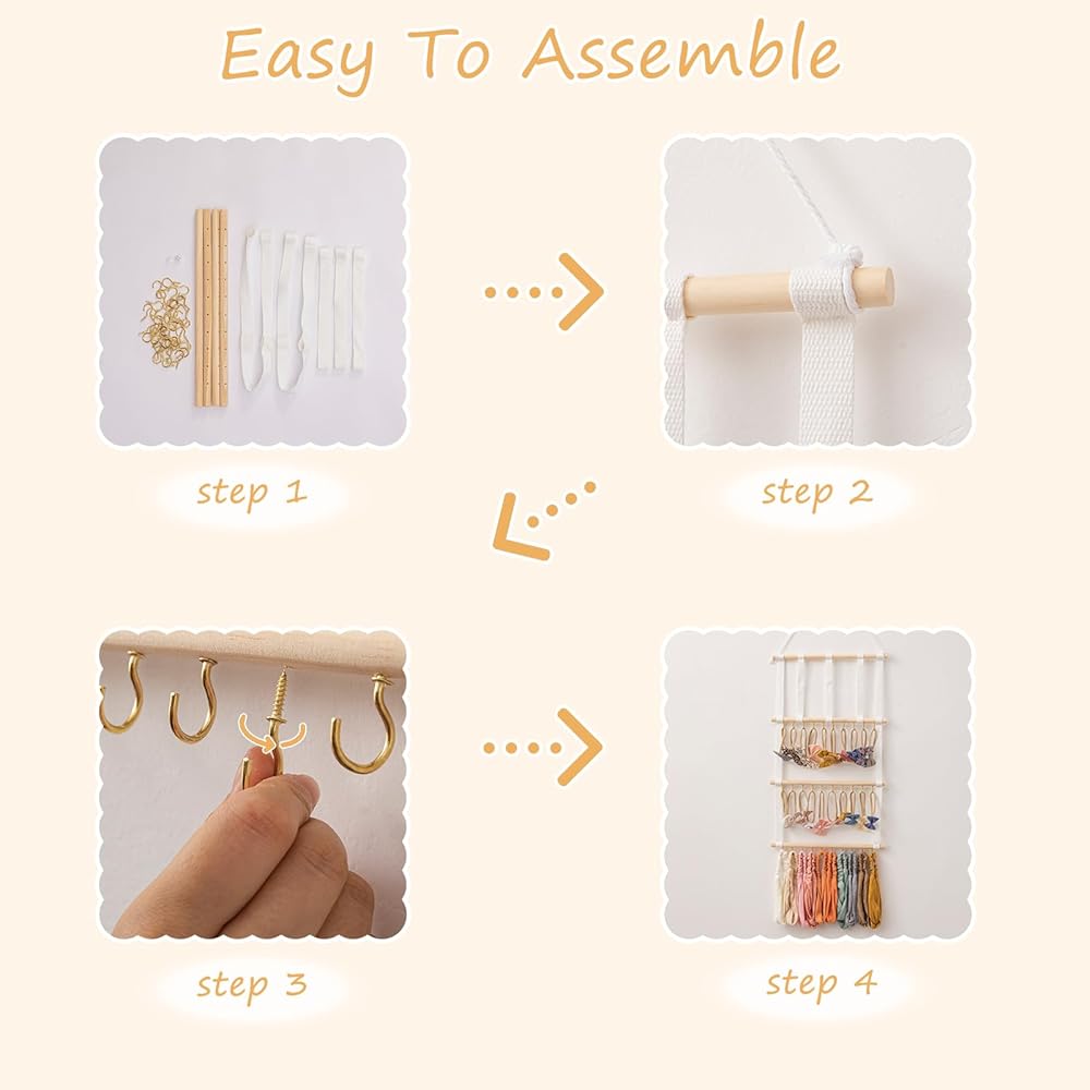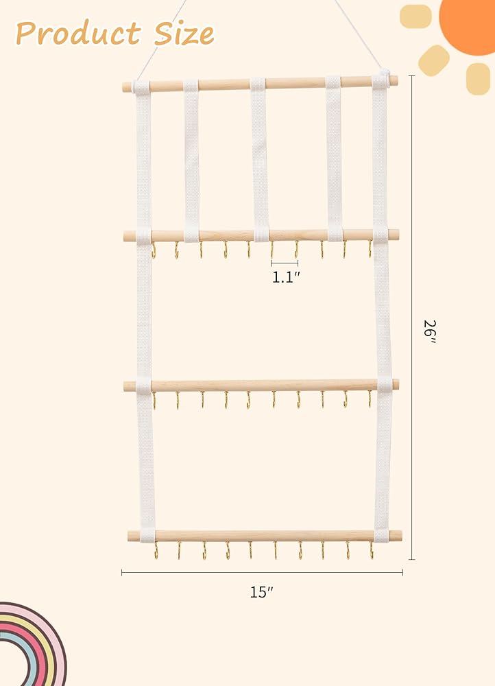 حامل القوس المنظم للشعر من HBselect 4 صفوف للفتيات فيونكات الشعر المعلقة وحامل عصابة رأس الطفل منظم القوس الخشبي مناسب للجدار أو الغرفة أو الباب أو الخزانة (شريط أبيض)