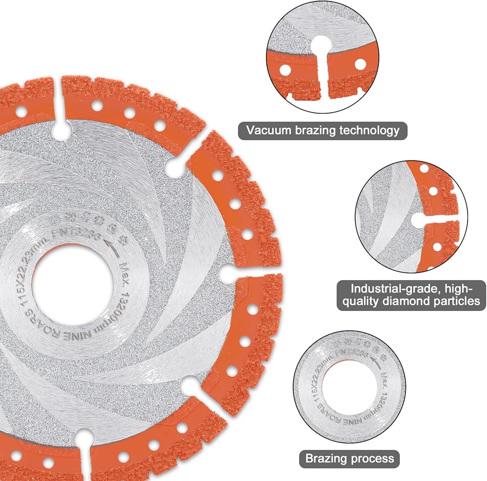 NINEROARS قطع المعادن شفرة المنشار الماس 4-1/2 بوصة 115 مم تقنية النحاس الفراغي لجميع الأغراض قطع عجلة لصفائح حديد التسليح زاوية معدنية من الفولاذ المقاوم للصدأ (لمطحنة زاوية أربور 7/8 بوصة)