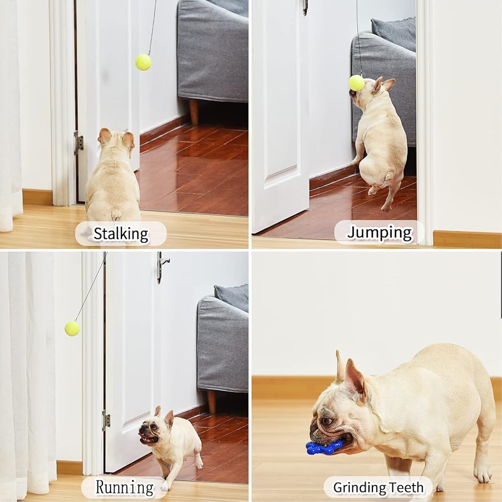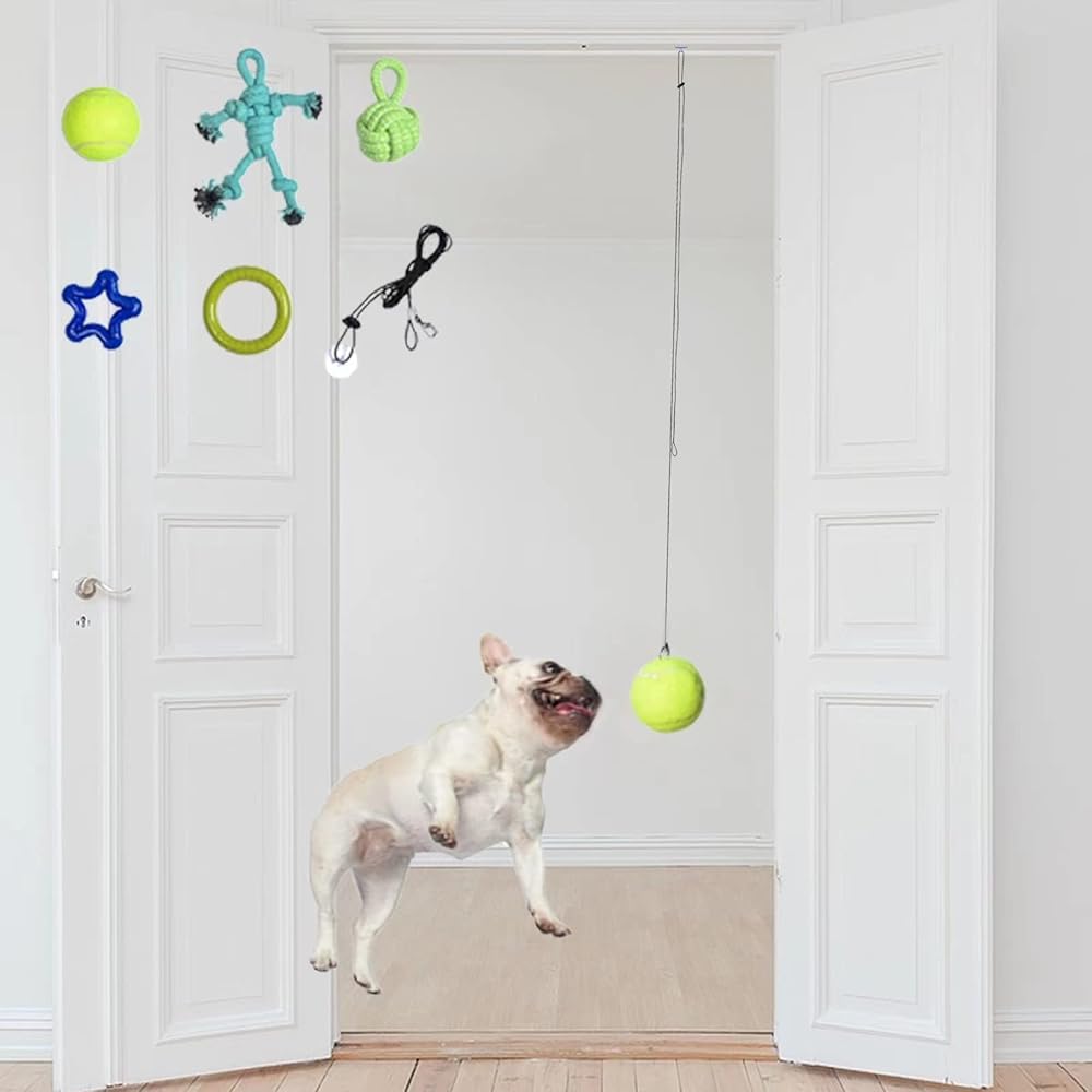 ألعاب للكلاب من 6 قطع من ألعاب الجراء، حبل مطاطي أوتوماتيكي للتعليق على الباب التفاعلي قابل للاستبدال، ألعاب قابلة للاستبدال ومقاومة للعض ومقاومة للاهتراء وحبل كرة التنس والعقدة
