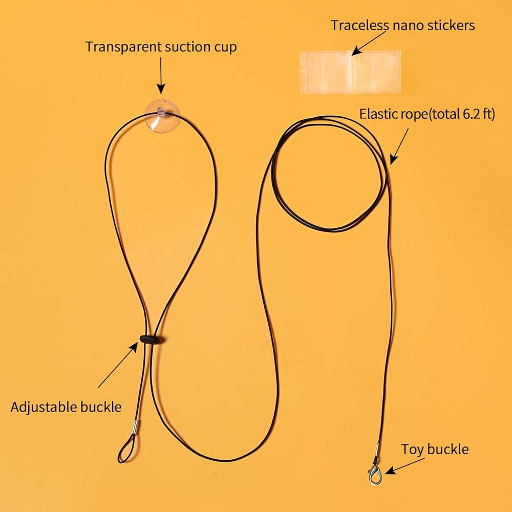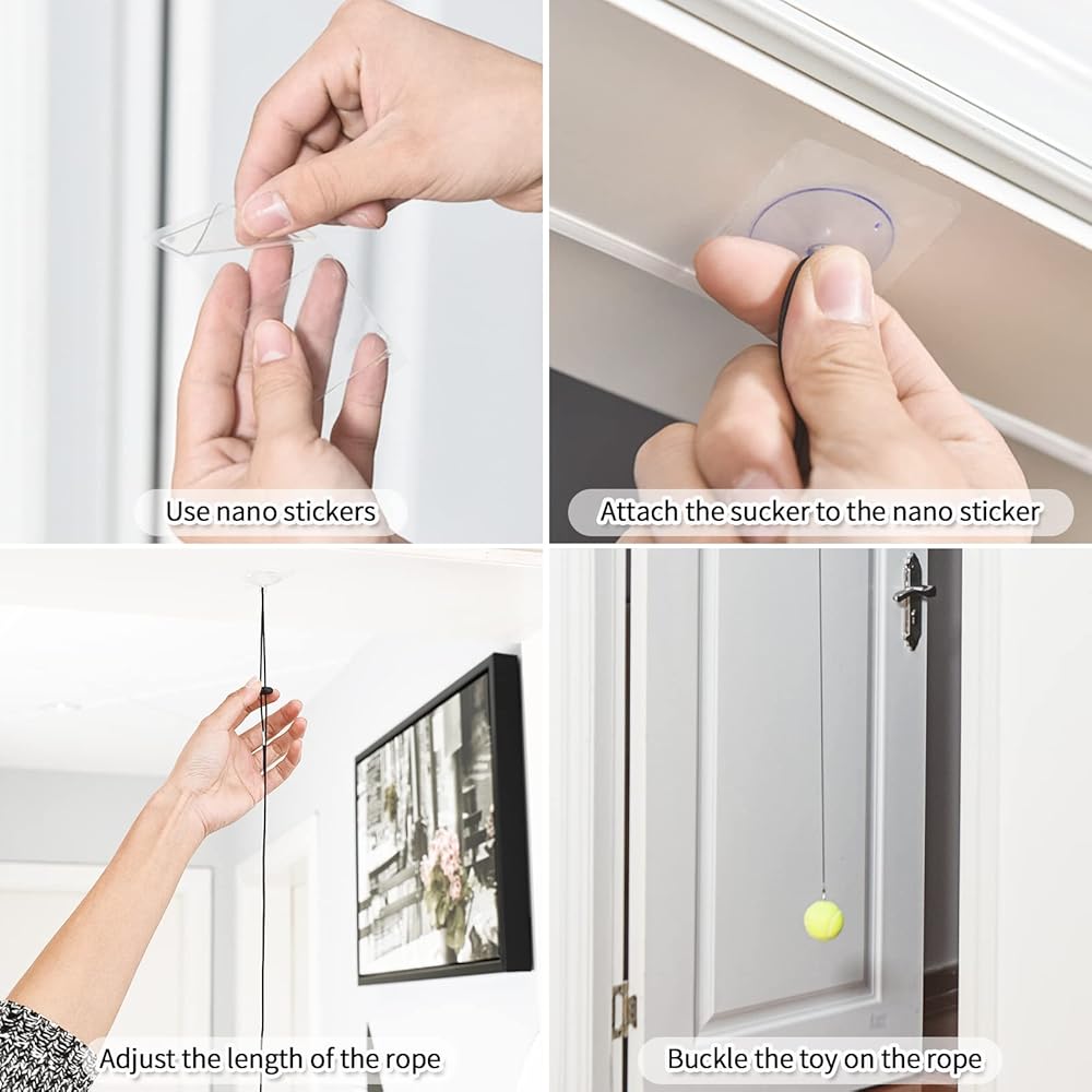 [يمكن استخدامه في العديد من الإعدادات] استخدام ملصقات النانو يجعل الحبل المرن يلتصق بإحكام. يمكنك لصق الأسلاك المرنة على إطارات الأبواب والنوافذ وأسطح الطاولات وما إلى ذلك. يمكن لكلبك أيضًا استخدام اللعبة بمفرده في أي مكان تقريبًا.