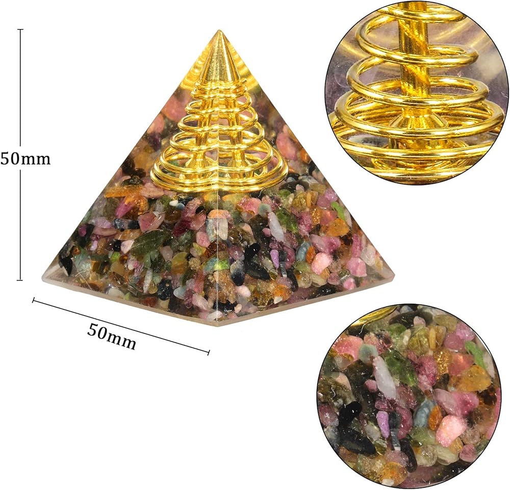 • Handmade Orgone Pyramid Crystal Decor: The energy pyramid is made of resin, Peridot stone and metal. The bottom of the pyramid is Peridot stone chips, and the upper part is a metal point wound with golden metal coil, which forms a beautiful and amazing pyramid energy generator. Due to the uniqueness of stone and resin, their color, shape and texture may be slightly different from each other.