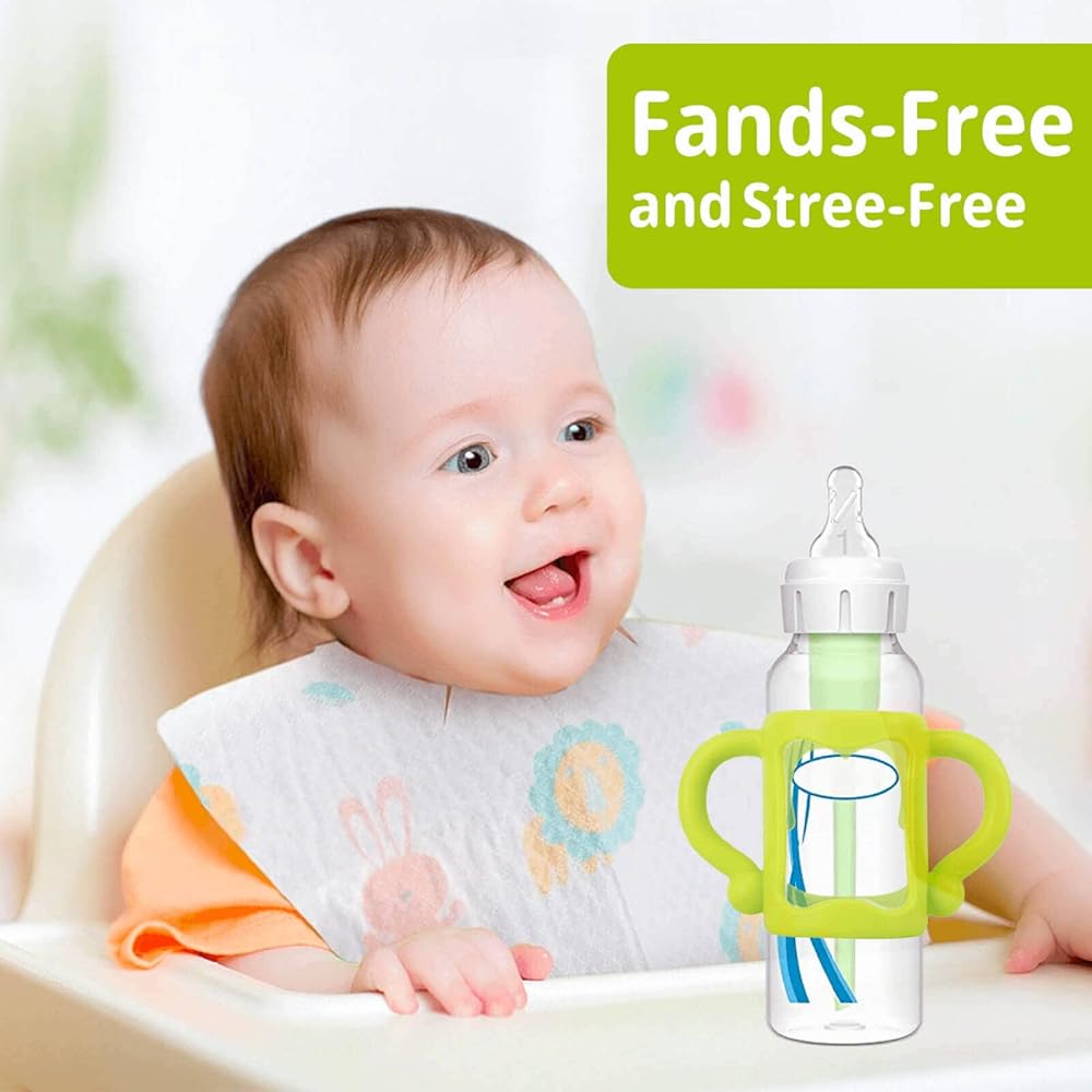 🍼حاملات زجاجات السيليكون الناعمة الآمنة على الطعام: مصنوعة من سيليكون BPA بدون إضافات كيميائية. آمن، خاصة للأطفال في مرحلة التسنين. لتجنب التلوث، اغسلي زجاجات دكتور براونز بعد كل استخدام