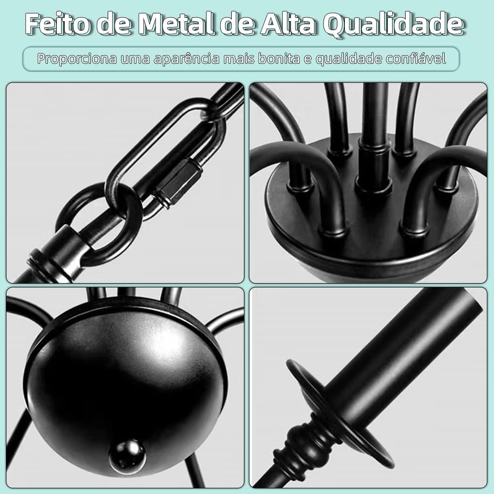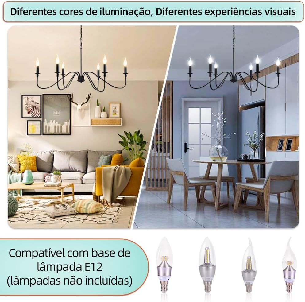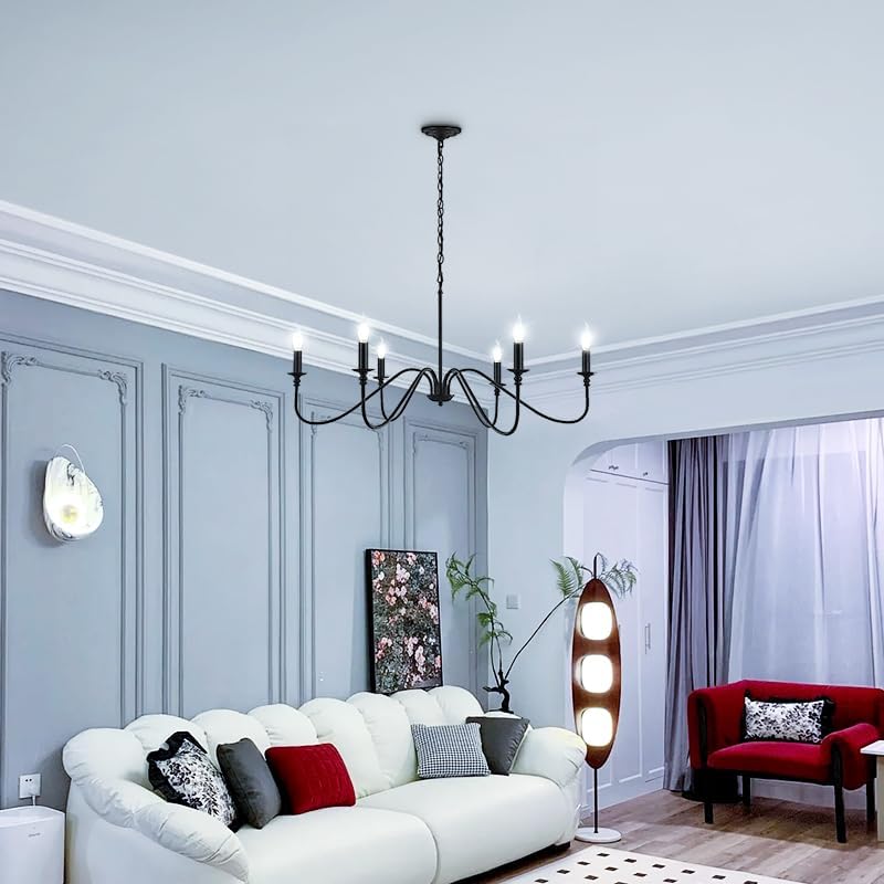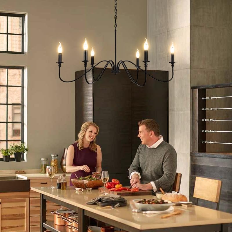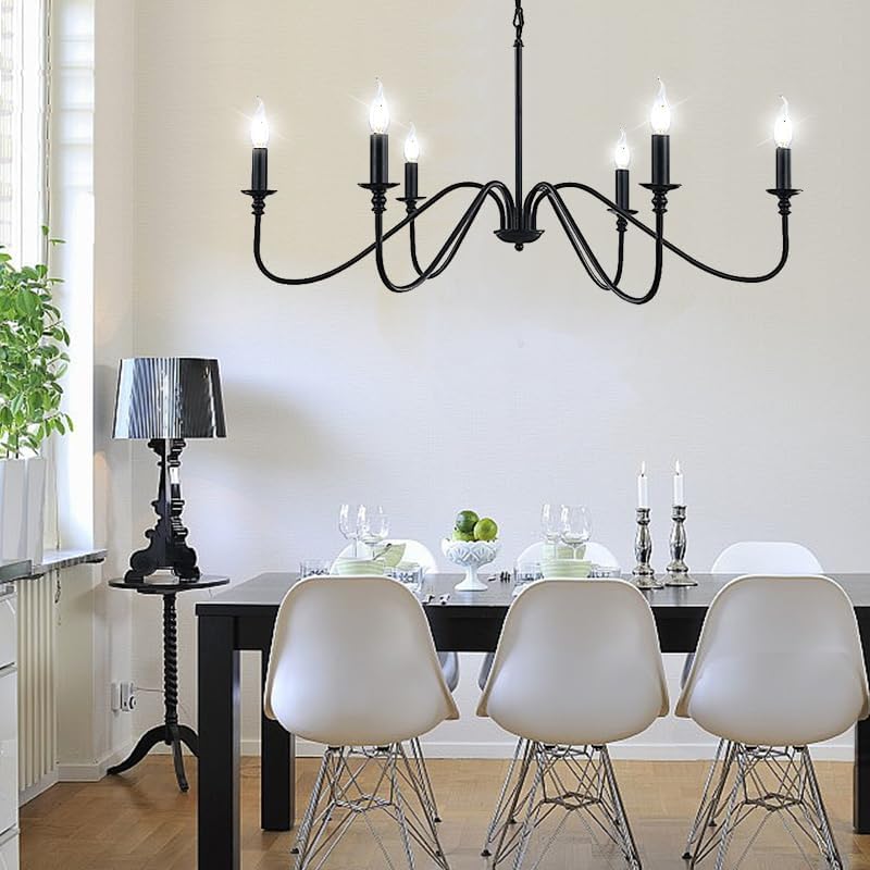 CHENBEN الثريا المعدنية السوداء، غرفة الطعام الإضاءة، الثريا مزرعة ريفي، 6-الضوء خمر الثريا لغرفة النوم غرفة المعيشة، E12 شمعة ثريات المطبخ الصناعية على الطاولة