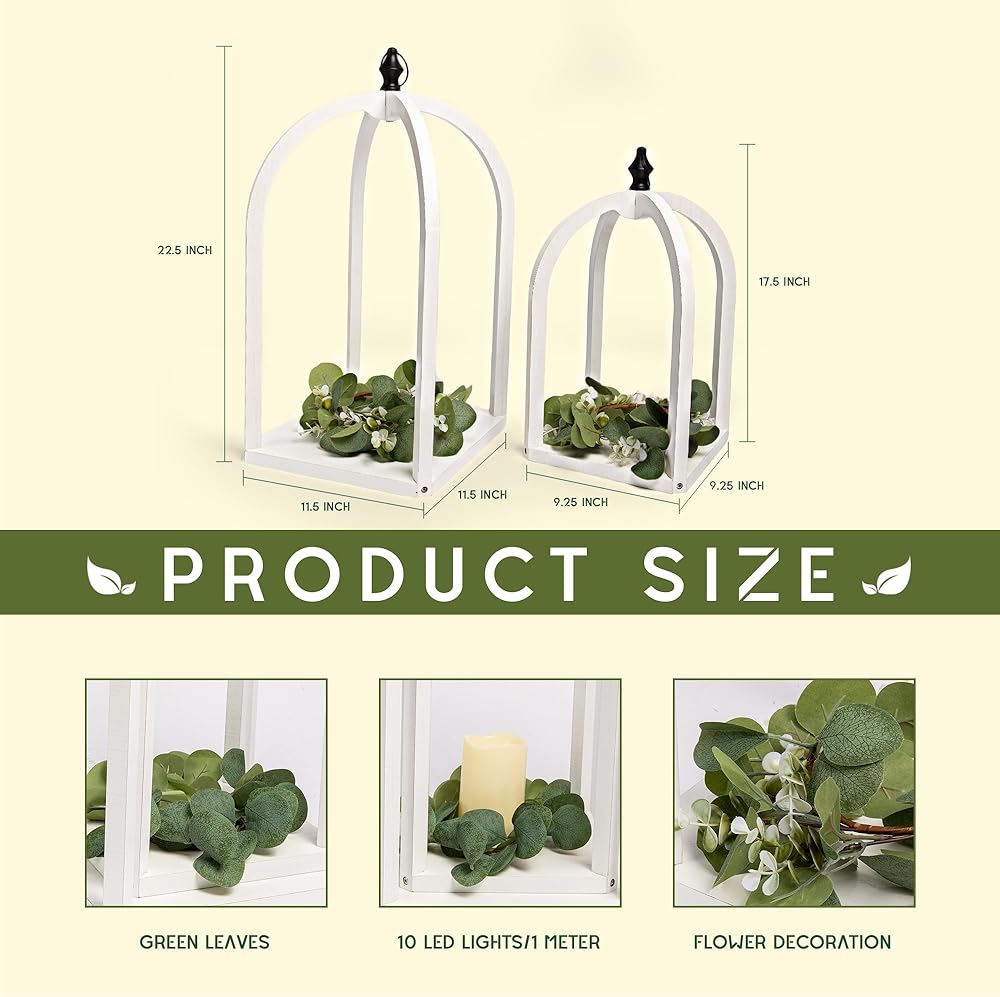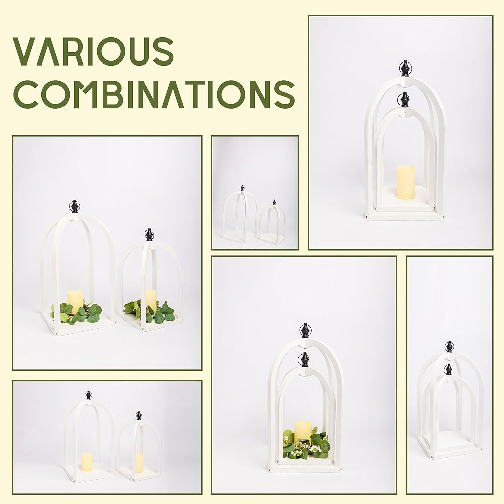 【حجمان مميزان】: فوانيس الرياح البيضاء الفريدة على شكل قوس، إنها فوانيس رائعة للديكور الداخلي والخارجي. يمكنك تعليقها أو استخدامها كديكور لفانوس الطاولة أو كديكور لفانوس الأرضية. بما في ذلك المقبض، يبلغ مقاس المقبض الأكبر 11.5 × 11.5 × 22.5 بوصة، ويبلغ مقاس الأصغر 9.25 × 9.25 × 17.5 بوصة. يأتي مع 2 أكاليل و2 * 1 متر 10 خيوط LED (الشموع غير متضمنة)