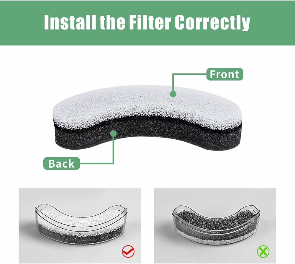 ❤【Easy to Use】Soak the cat fountain filters in water for 5 minutes before use. Rinse it thoroughly under running water. Soaking and rinsing the filter helps activate it and remove any particles or debris.