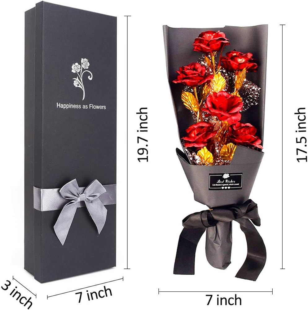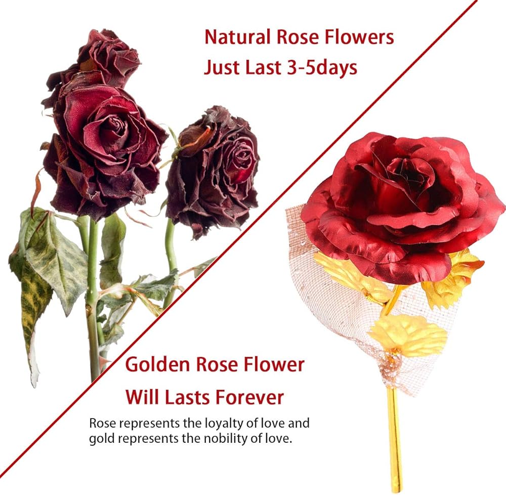 ورود ذهبية 24 قيراط، وردة مطلية بالذهب 24 قيراط وردة مغموسة بالذهب مع صندوق هدايا فاخر لها، باقة ورود صناعية إلى الأبد هدية فريدة لعيد الحب والذكرى السنوية وحفلات الزفاف وعيد ميلاد الأم - أحمر