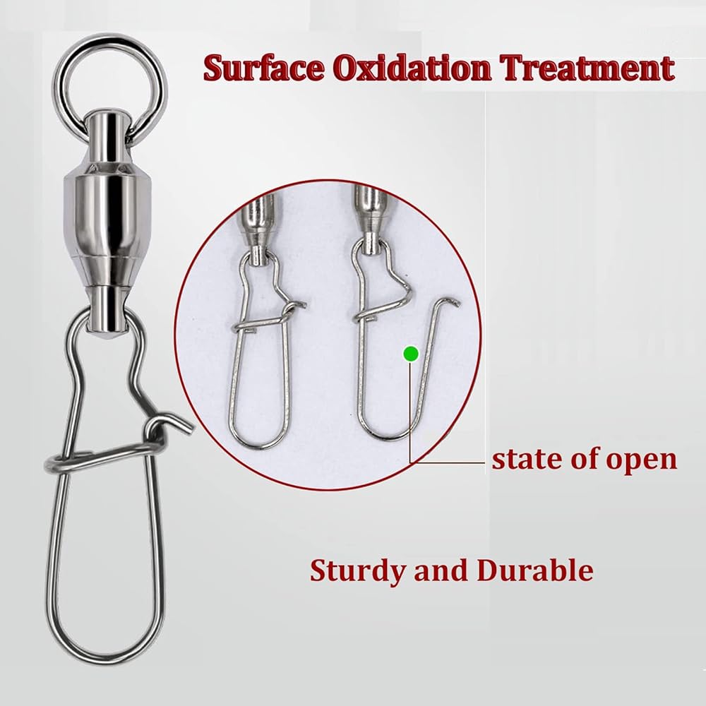 High Strength: The welded ring design provides a perfect shock resistance performance ,the high strength swivel react rapidly when jumping into and out of water and helps you get more big fishes .