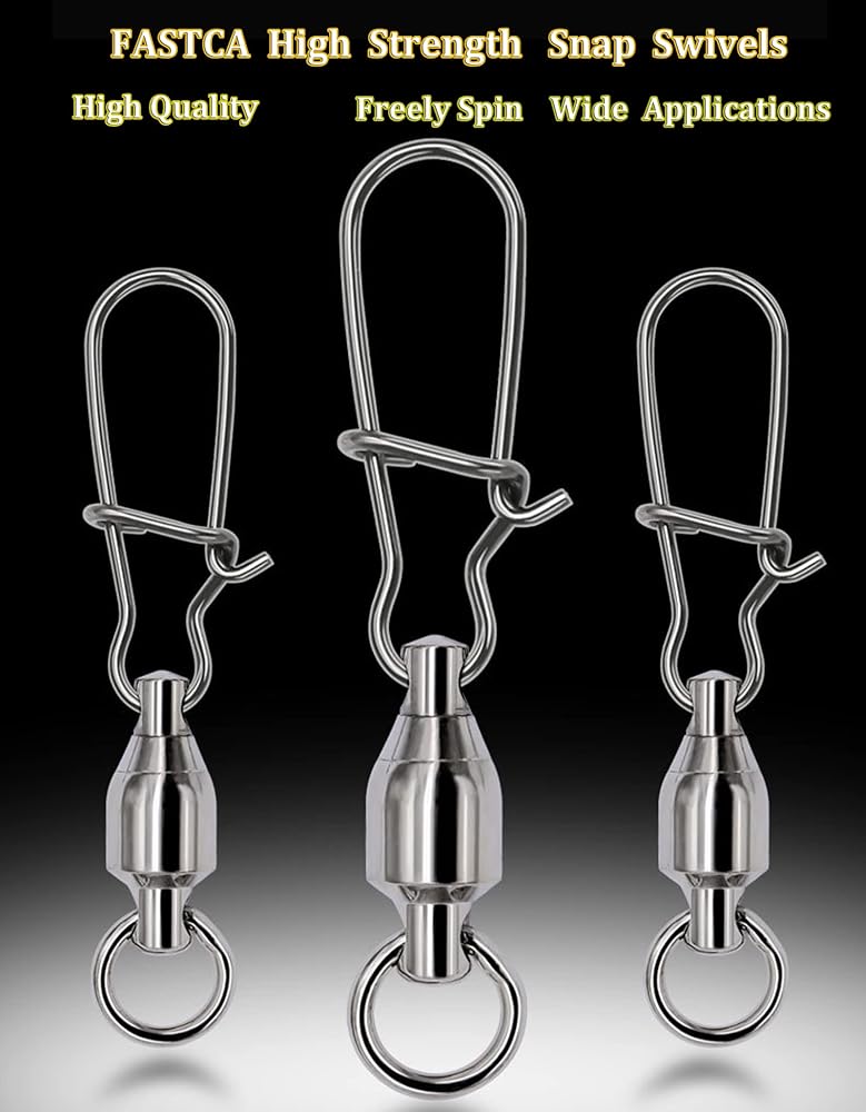 High Quality: FASPLORE fishing snap swivel are made of high quality stainless steel, sturdy and durable, not easy to rust and corrode, not easy to break. the pulling force of FASTCA swivels snap ranges from 10 kg to 59 kg (22 lb to 130 lb) depending on the size.