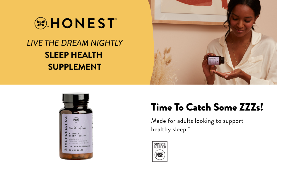 Honest's Live the Dream Nightly Sleep Health Supplement is made for adults looking to support healthy sleep.* Made with a blend of ingredients including magnesium, theanine, GABA, and Valerian root extract. *This statement has not been evaluated by the Food and Drug Administration. This product is not intended to diagnose, treat, cure, or prevent any disease.