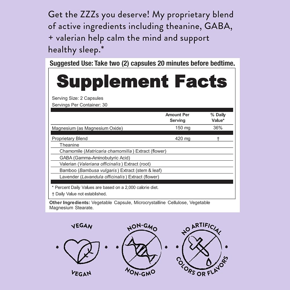 Made with magnesium, valerian root extract, and theanine