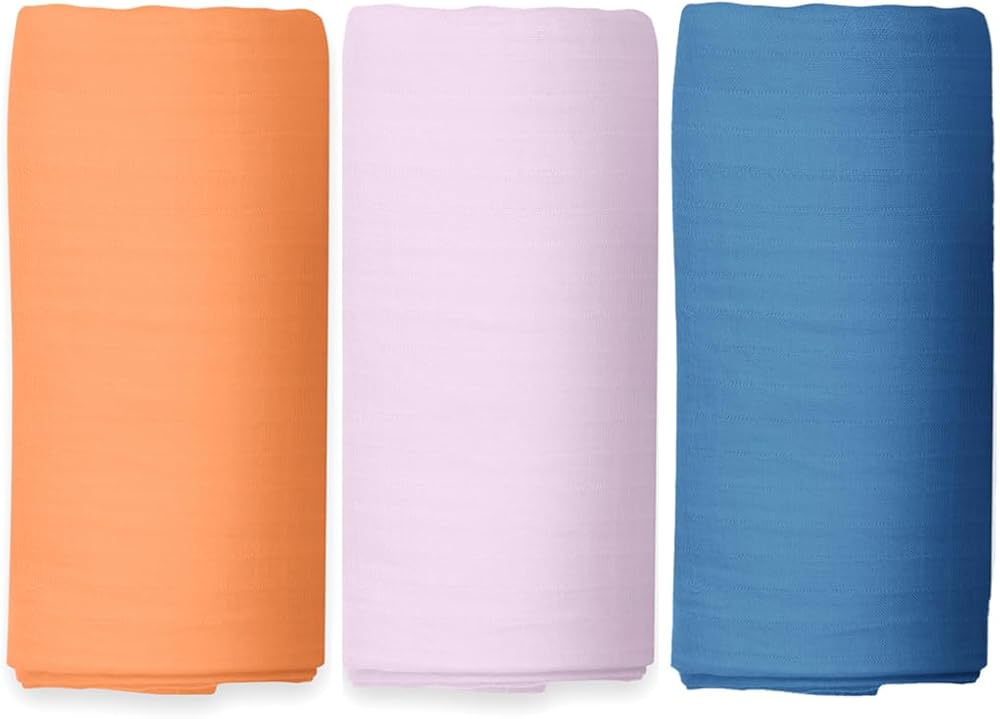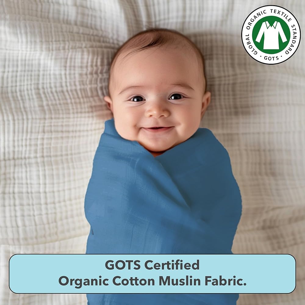 Wrap your Baby in this Super-soft Muslin Swaddler Wrap to keep your baby warm and secure,leading to a perfect nights sleep. Our organically grown cotton does not have any traces of harmful substance which can irritate the baby's sensitive skin.The 3 piece set containing 3 coordinated designs is a perfect purchase as you don't need any more.It also works as a wonderful gift to be given at Baby Showers Our Extra Large size of 44 x 44 inches makes this usable for a long long time from 0-18 months as a Swaddle, Towel, Sheet, Sun Cover, etc. You do not need to buy more.Beautiful Timeless baby prints make these swaddles look attractive for a long time. You're going to love them more and more with each wash, as they will get softer. Fast colors make this fabric machine washable in warm water and still retain is vibrant colors.We've colour coordinated these with The White Cradle Baby Crib sheets & Blankets. Buy them together to make the picture-perfect nursery.