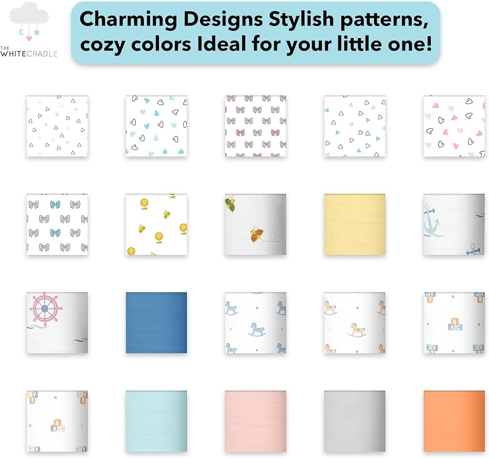 • DESIGNS: We've used beautiful baby prints that'll be a perfect addition to your baby's nursery. The colour-fast printing means that you can throw it in the machine to wash with warm water without the fear of fading. Our premium muslin fabric will get softer & softer with each wash.