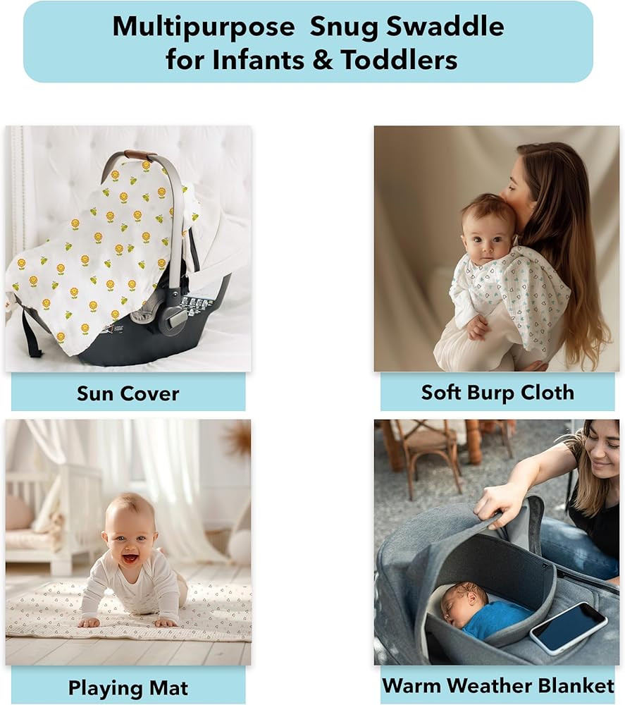 • MULTIPLE USES: Use it as a Nursery Swaddling Blanket, as a burp cloth, as a sheet during changing, as a light blanket during warm weather, or as a sun cover on prams. We've made it large so that you can use it everywhere!