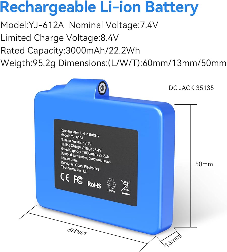 Package Included: A pair of 7.4V 3000mAh Rechargable heated Li-Polymer Batteries.