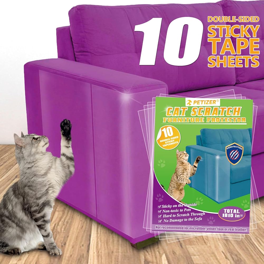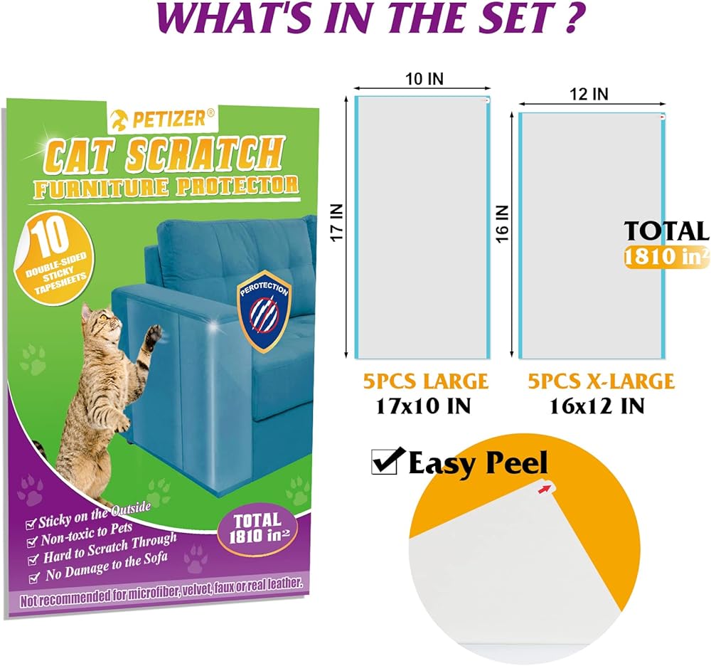 بيتيزر 10 قطع من واقي الأثاث من الخدش للقطط، لاصق مزدوج الجوانب مانع للخدش للقطط، شريط تدريب القطط الشفاف، واقي الأريكة للقطط، 5 قطع بطول 16 انش طول 12 انش عرض + 5 قطع طول 17 انش وعرض 10 انش
