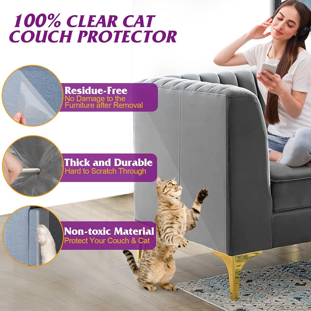 • مواد آمنة ومتينة - واقيات الأثاث من بيتيزر من القطط مصنوعة من مادة البولي بروبيلين الشفافة وغير السامة، وآمنة بنسبة 100% للقطط والأشخاص. الملاءة قابلة للإزالة بسهولة وخالية من البقايا، ولا تسبب ضررًا للأثاث. بفضل الجيل الجديد من المواد اللاصقة، فإن الشريط رقيق ولكنه قوي، يصعب خدش مخالب القطط أو الأشياء الحادة الأخرى.